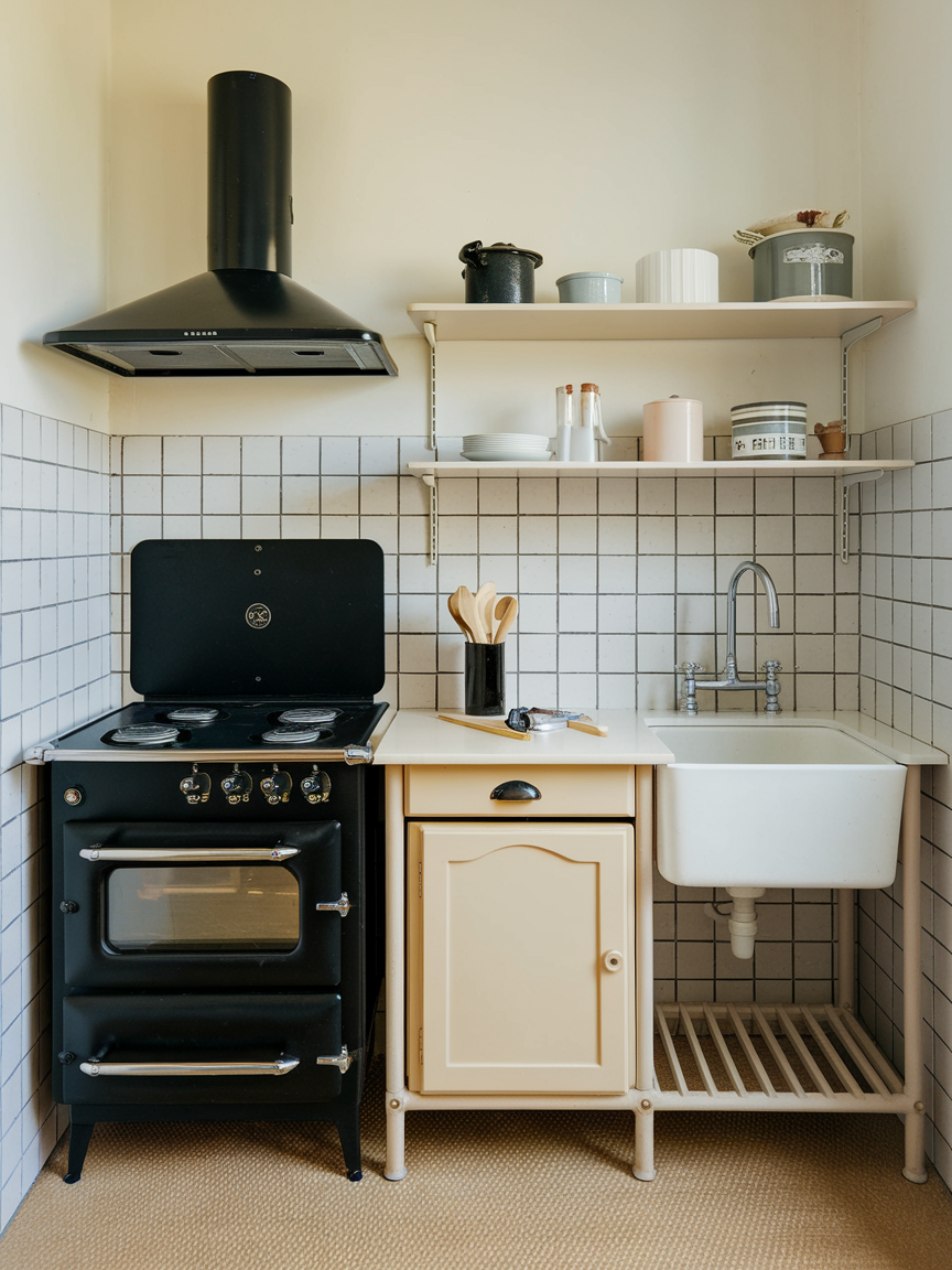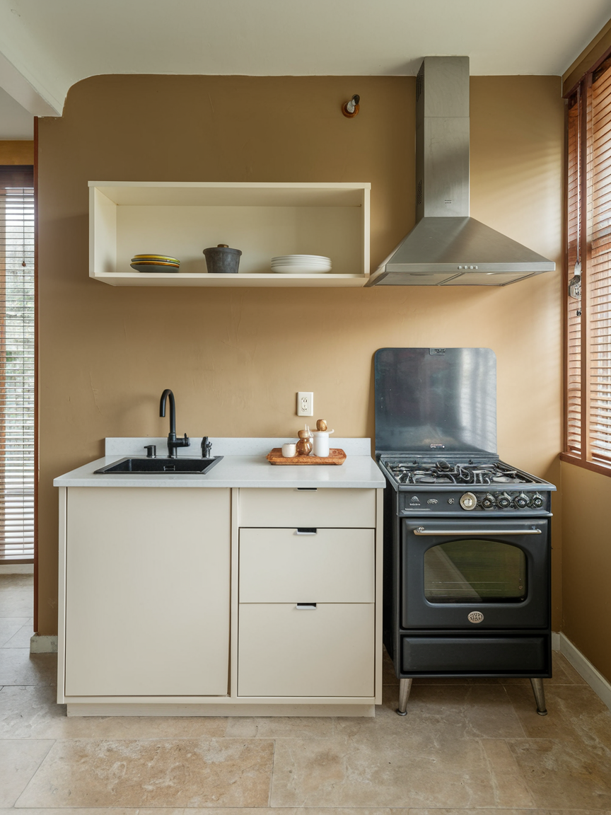 Open shelving is perfect for small kitchens because it provides storage without making the room feel enclosed. You can display attractive dishware, glassware, or stylish containers while keeping everything within reach. This approach encourages you to keep things tidy since everything is on show, and it adds personality to your kitchen. Pair open shelves with baskets or jars for a clean, organized look that feels cozy yet chic. Once you embrace open shelving, your compact kitchen will feel more open, airy, and visually interesting, proving that minimal space can still be stylish.