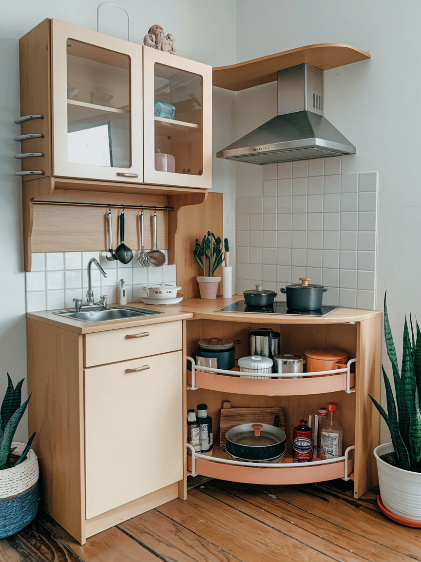 Corners often become wasted real estate, but with the right storage solutions, they can shine. Lazy Susans, rotating shelves, or corner drawers make it easy to access pots, pans, or pantry items. Maximizing corners keeps counters free and ensures that every inch of your kitchen works for you. These solutions not only improve organization but also enhance the flow of the space. Once you implement corner storage, your mini kitchen will feel larger, more functional, and a lot less frustrating when reaching for that hidden spice jar.