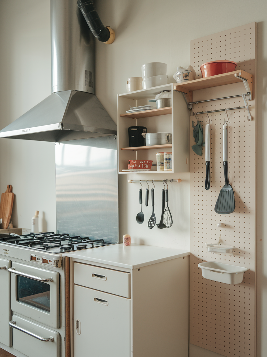 Going vertical is key in a mini kitchen. Hooks, pegboards, and hanging racks keep pots, pans, and utensils accessible while freeing up cabinets and counters. Wall-mounted rails can hold mugs, knives, or spices, creating a visually appealing and highly functional display. Vertical storage ensures that every inch of wall space is used wisely. Once implemented, this approach transforms a small kitchen into a more organized, efficient, and stylish space, proving that thinking upwards is just as important as thinking outward in compact layouts.