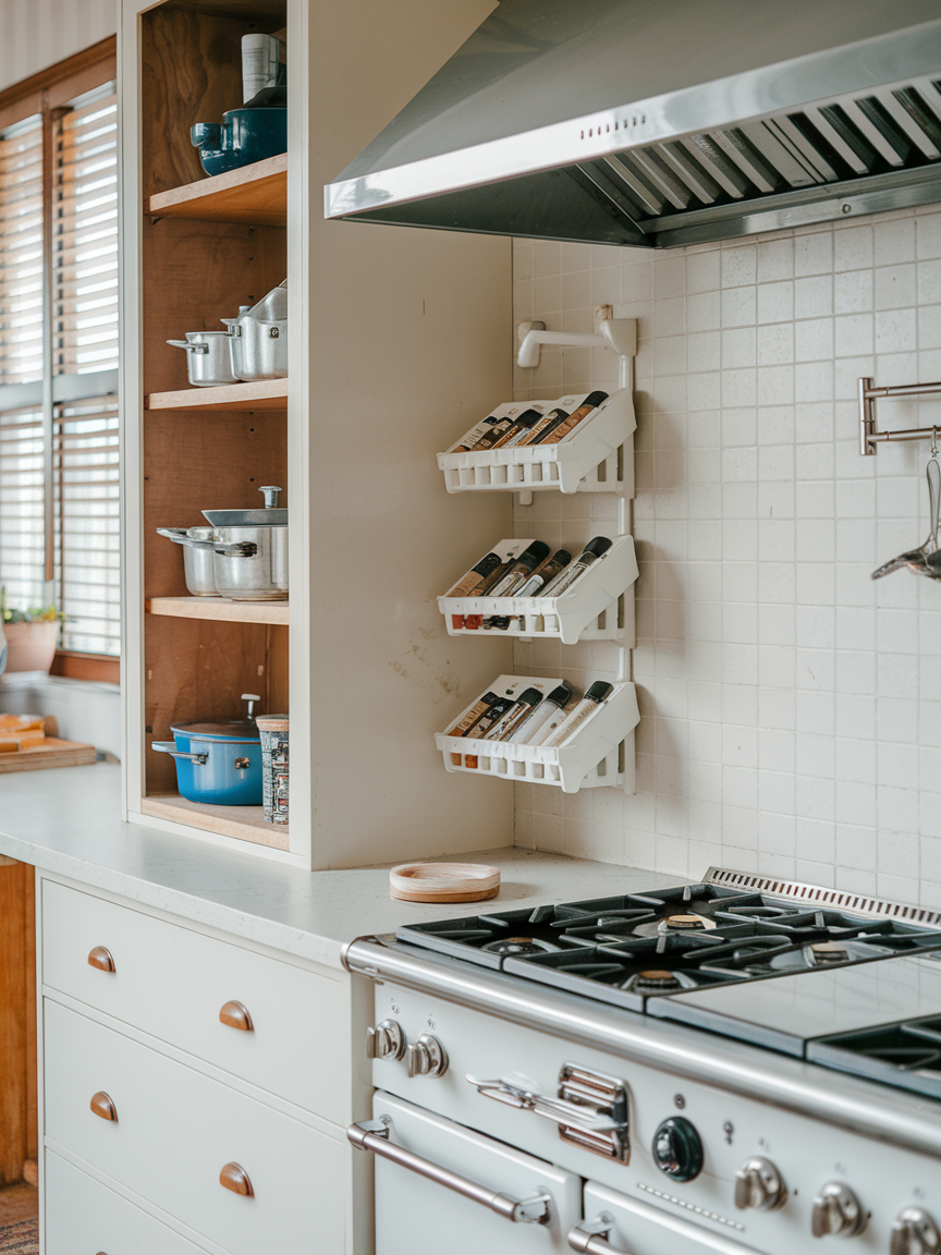 Tiered spice racks keep your seasonings visible, organized, and easy to access. By arranging spices in layers, you eliminate the need to dig through crowded shelves. This setup saves time during cooking and ensures that all your ingredients are within reach. It also allows you to organize spices by type or frequency of use, creating a system that supports your cooking habits. The result is a more efficient and enjoyable cooking experience.