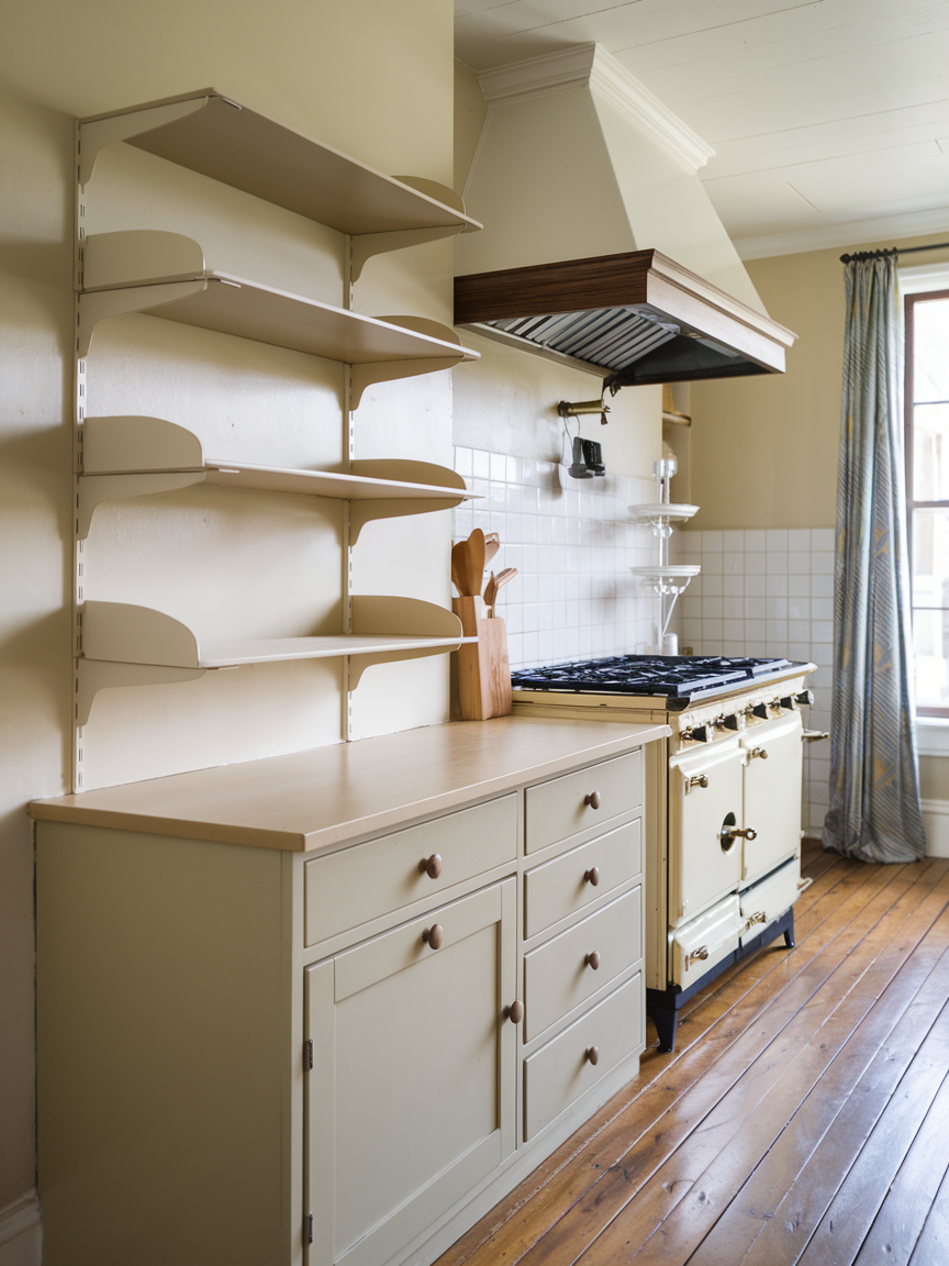 Overhead storage makes use of vertical space that often goes unused. Installing shelves or racks above cabinets or work areas allows you to store less frequently used items such as large pots, seasonal cookware, or decorative pieces. This approach frees up lower storage while keeping items accessible when needed. It also adds visual interest, especially when styled with attractive kitchenware or decor, making your kitchen feel both functional and thoughtfully designed.