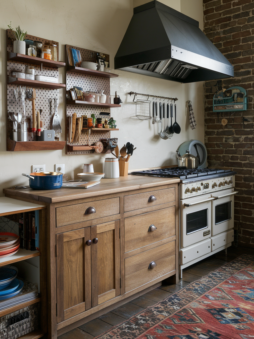 Pegboards offer a flexible and highly customizable storage solution that turns unused wall space into a functional feature. With adjustable hooks, shelves, and baskets, you can organize utensils, pots, mugs, or even small containers in a way that suits your workflow. This system keeps essential items within arm’s reach while freeing up valuable cabinet space. It also adds a creative and personal touch to your kitchen, making storage both practical and visually interesting.