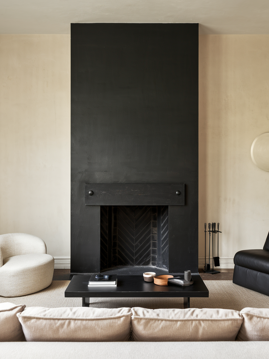 A black fireplace naturally becomes the centerpiece of a living room, offering both visual strength and architectural presence. Whether finished in matte paint, stone, or tile, it adds depth and sophistication while anchoring the overall design. The bold tone highlights the structure of the fireplace, making it feel more defined and impactful. Pairing it with lighter walls, natural wood, or neutral furnishings ensures balance and prevents the space from feeling too heavy. This feature not only enhances the aesthetic but also reinforces a cozy, inviting atmosphere centered around warmth and comfort.