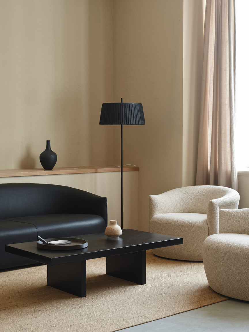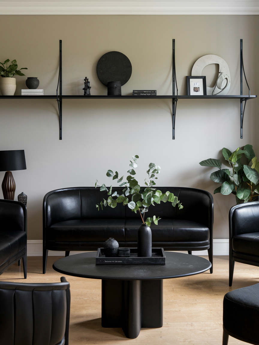 Incorporating black through smaller furniture pieces is an effective way to introduce contrast without overwhelming the room. Side tables, consoles, or accent chairs in black tones help define areas within the space while adding structure and visual weight. These pieces act as subtle anchors that tie the design together, especially in rooms with lighter palettes. Pairing black furniture with materials like marble, glass, or metal enhances its elegance and prevents it from feeling too heavy. This approach offers flexibility, allowing you to experiment with black in a controlled and stylish way.