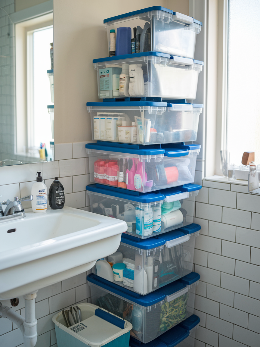 Stackable bins are the unsung heroes of under-sink storage. Instead of piling everything into one bottomless pit, you can stack bins to maximize vertical space. Clear bins are especially helpful so you can actually see what’s inside without digging. Use them for cleaning supplies, extra toiletries, or even hair tools. Suddenly, that dreaded under-sink space transforms from chaos into something resembling order. Small win, big difference.