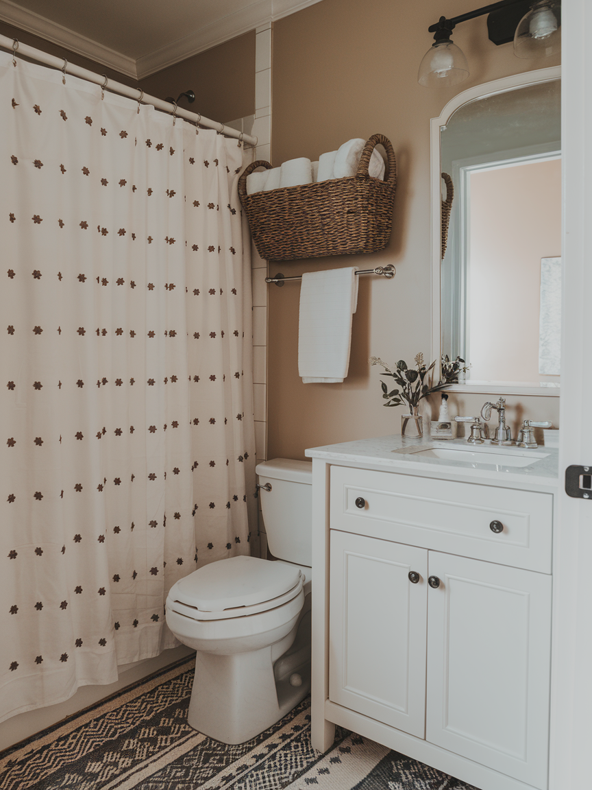 If you’re short on floor space, wall-mounted baskets are a clever fix. They work kind of like floating shelves, but add more structure. Perfect for rolled towels, extra toilet paper, or hair products, they bring storage off the counter and onto the wall. They’re especially helpful in tiny bathrooms where every inch counts. Plus, they add a bit of texture and charm, especially if you go for woven or wire designs.