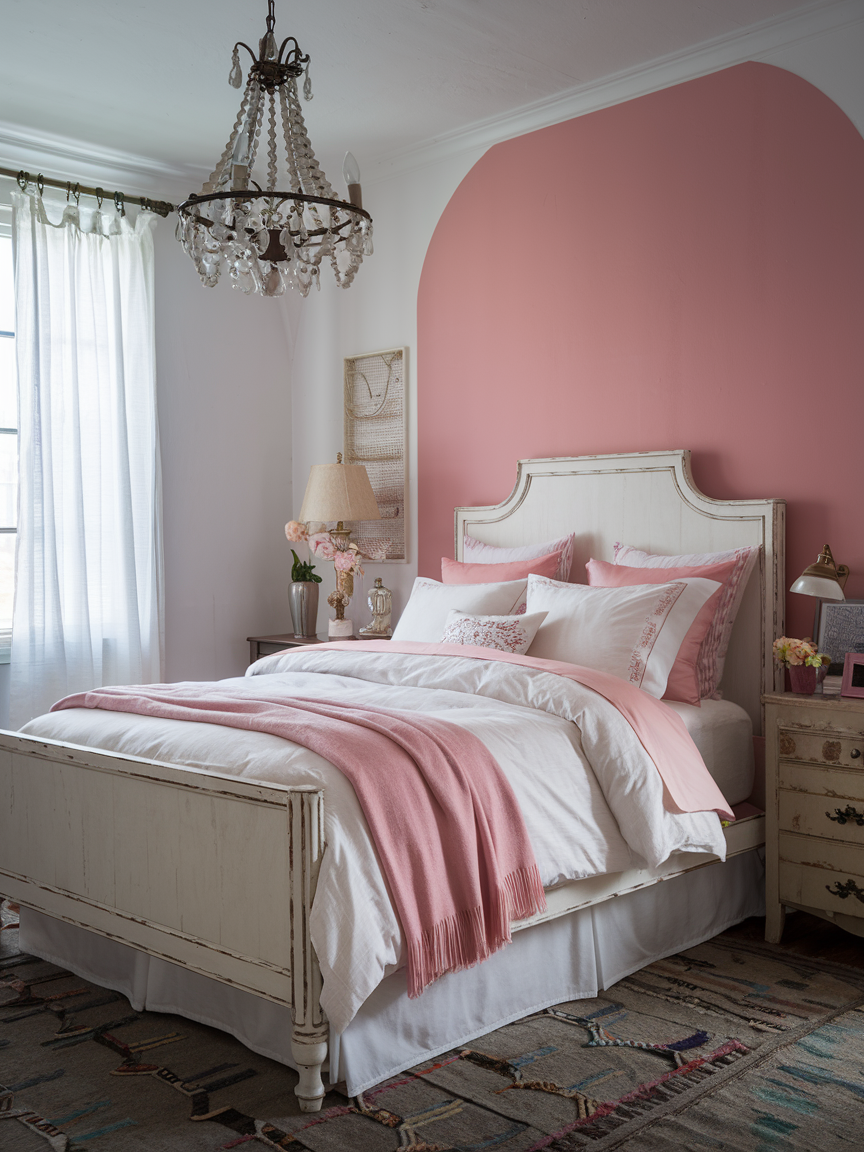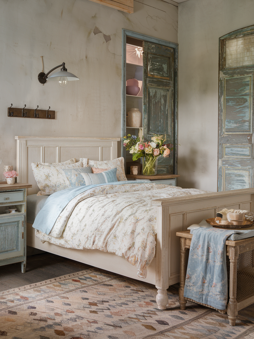 Shabby chic bedrooms are about comfort, and nothing says cozy like a rug underfoot. A faded floral rug or a soft neutral one adds warmth and pulls the room together. Layering rugs is another shabby chic trick that adds depth and personality. They don’t need to be perfect or brand-new—the more character, the better. Rugs make your bedroom feel grounded and extra welcoming, especially on chilly mornings.