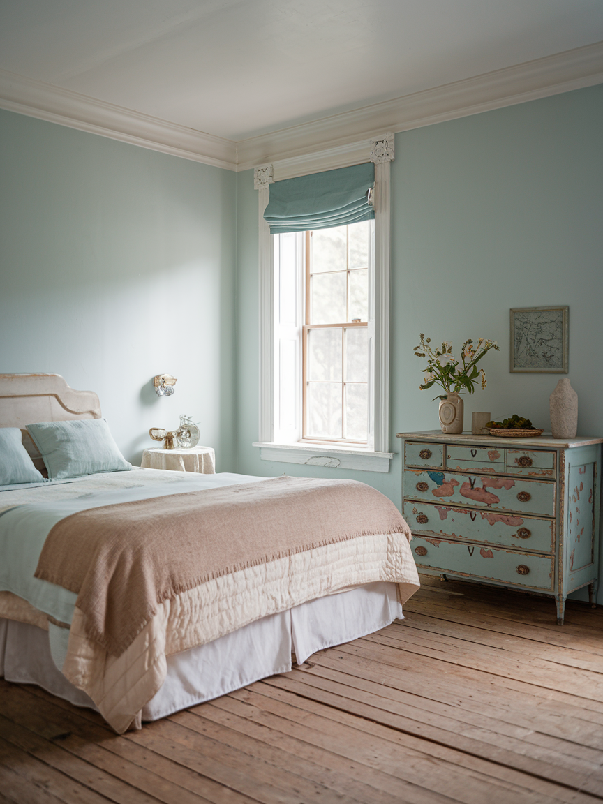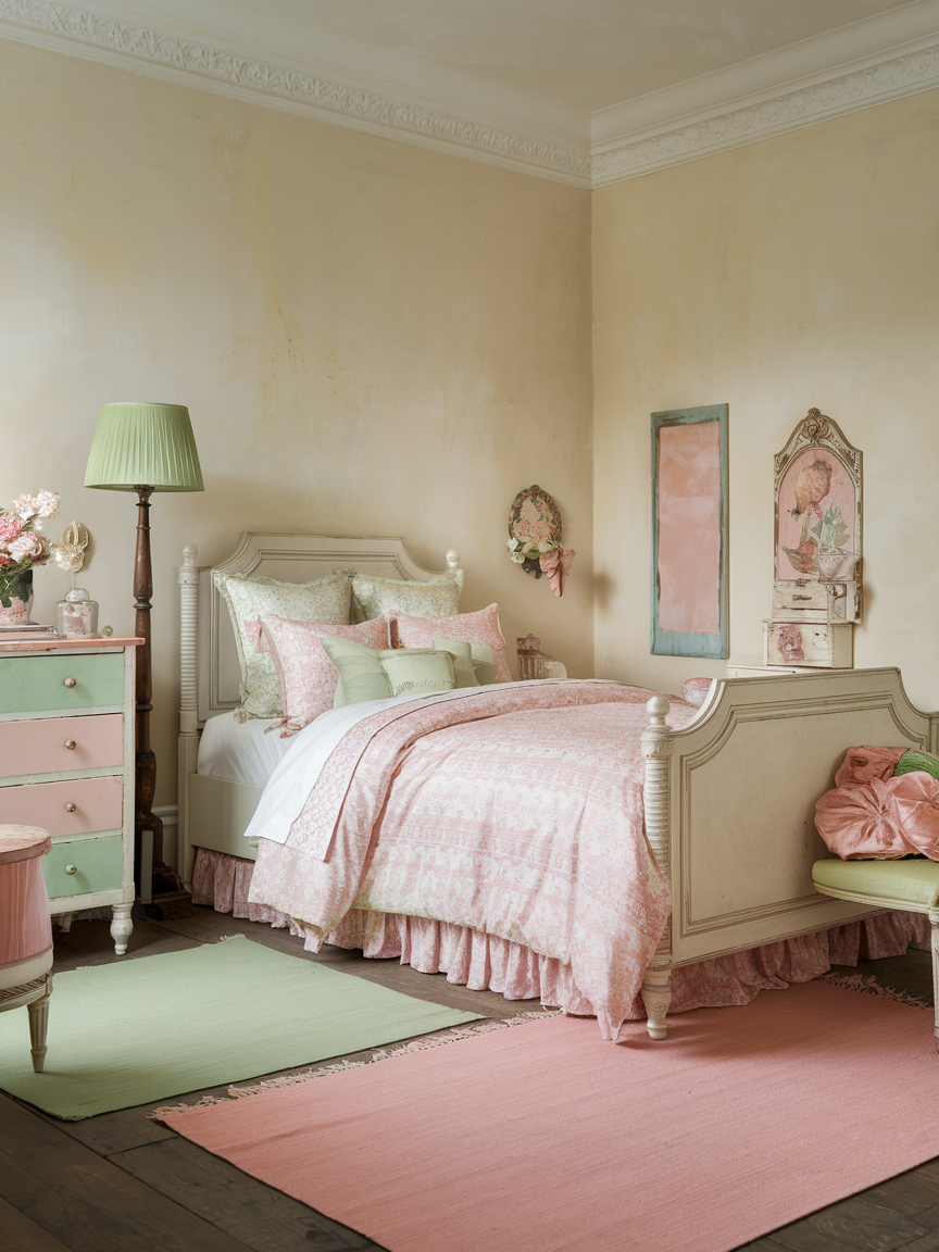 Colors set the mood, and shabby chic thrives on soft pastels. Think blush pink, powder blue, mint green, and creamy ivory. These shades instantly make a space feel light and welcoming. They also blend beautifully with whitewashed furniture and distressed finishes. If you’re hesitant about going full pastel, start with accents—like throw pillows, lampshades, or bedding—and balance them with white or beige walls. Before you know it, your room will feel calm, inviting, and effortlessly chic.