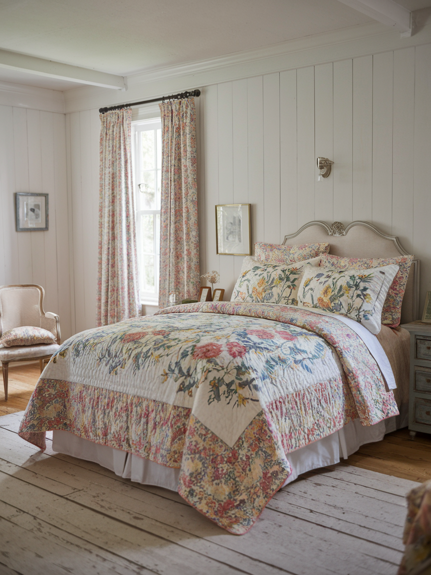 Nothing says cozy like a quilt. In shabby chic bedrooms, patchwork or vintage quilts are practically essential. They add warmth, color, and a sense of history. Even if they look a little faded, that just makes them more charming. Quilts also layer beautifully with other linens, creating a bed that looks welcoming and unique. It’s like sleeping under a blanket that tells a story.