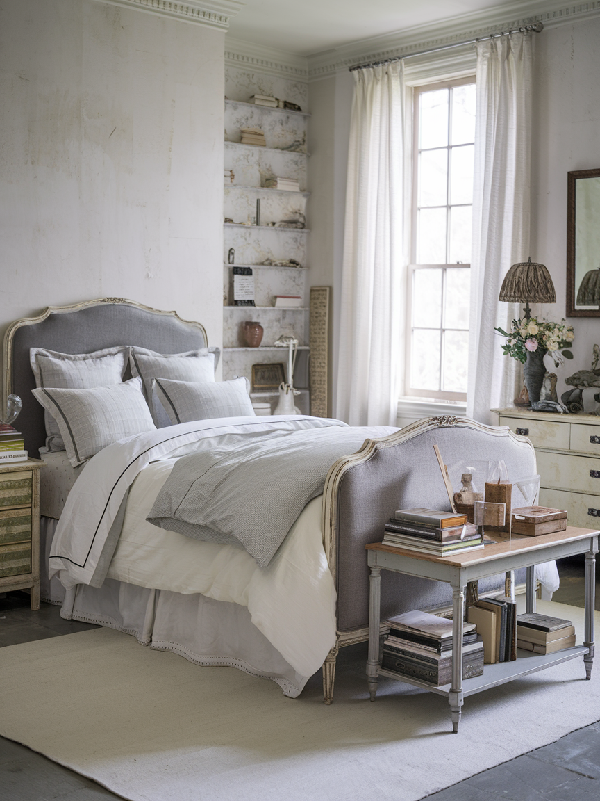 Accessories can make or break a room, and in shabby chic bedrooms, it’s all about the details. Stack a few old books on your nightstand, add some vintage perfume bottles, or place a glass vase with flowers on your dresser. The idea is to create that “collected over time” vibe. Flea markets and thrift shops are goldmines for these little treasures. The more eclectic your collection, the more charming your bedroom becomes.