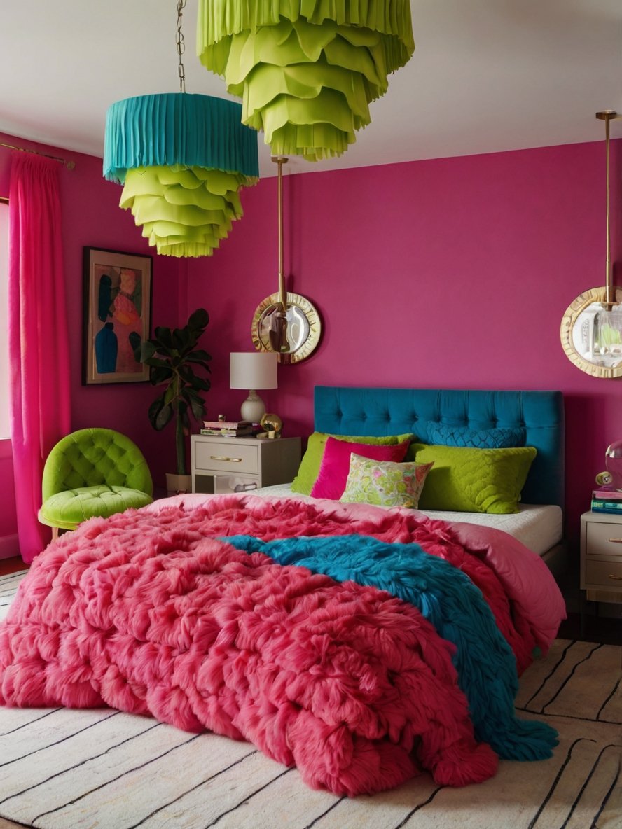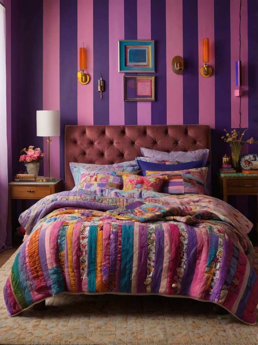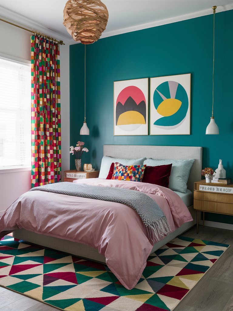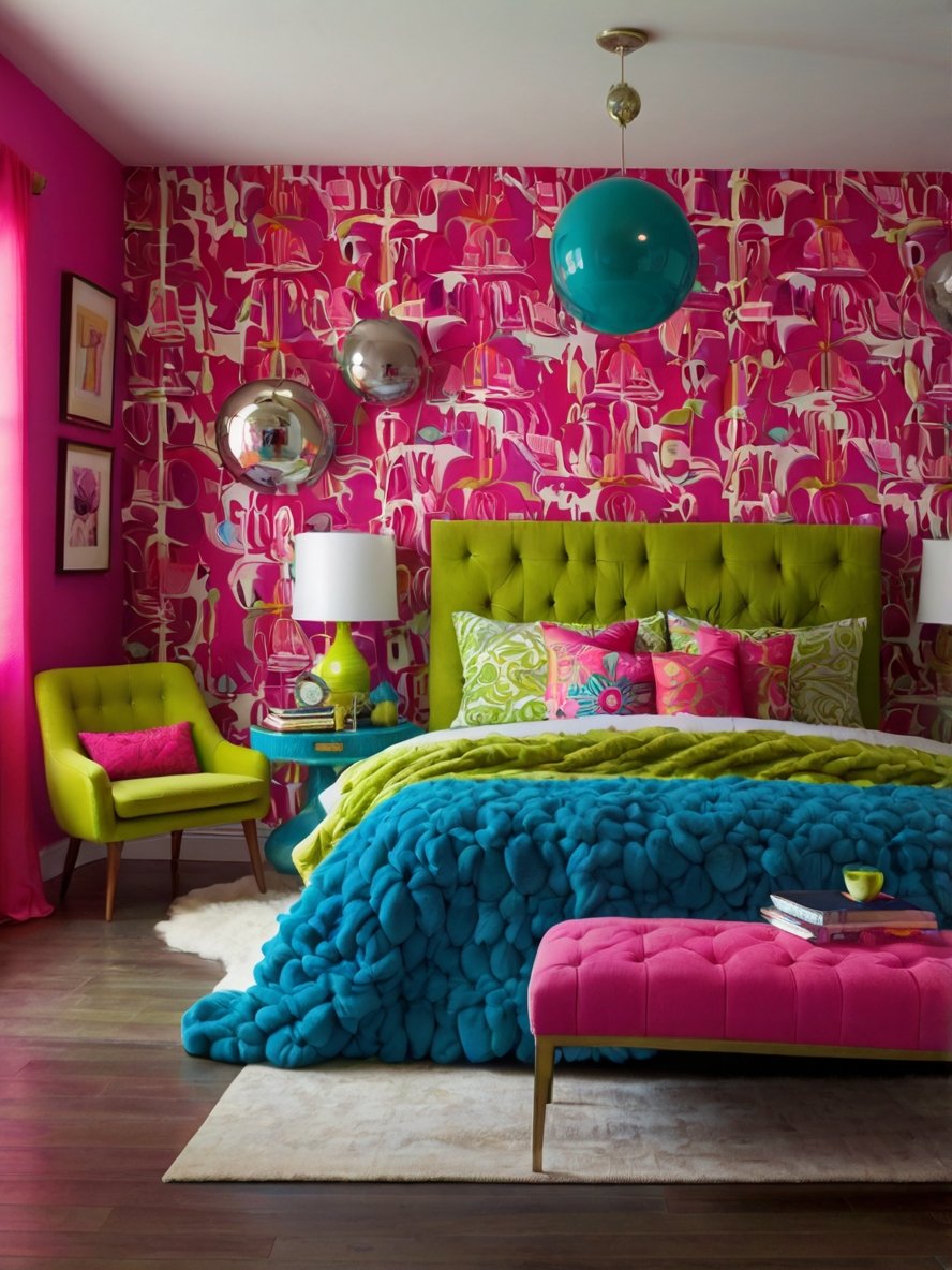 Imagine a room where colorful bedding, statement furniture, and eye-catching decor come together to create a space that not only looks great but also makes you feel energized and inspired. This trend allows for endless creativity, letting you explore color combinations and unique decor elements that reflect your personal style. Every detail, from the patterns on the walls to the accessories on the nightstand, contributes to a room designed to make you feel happy and relaxed.