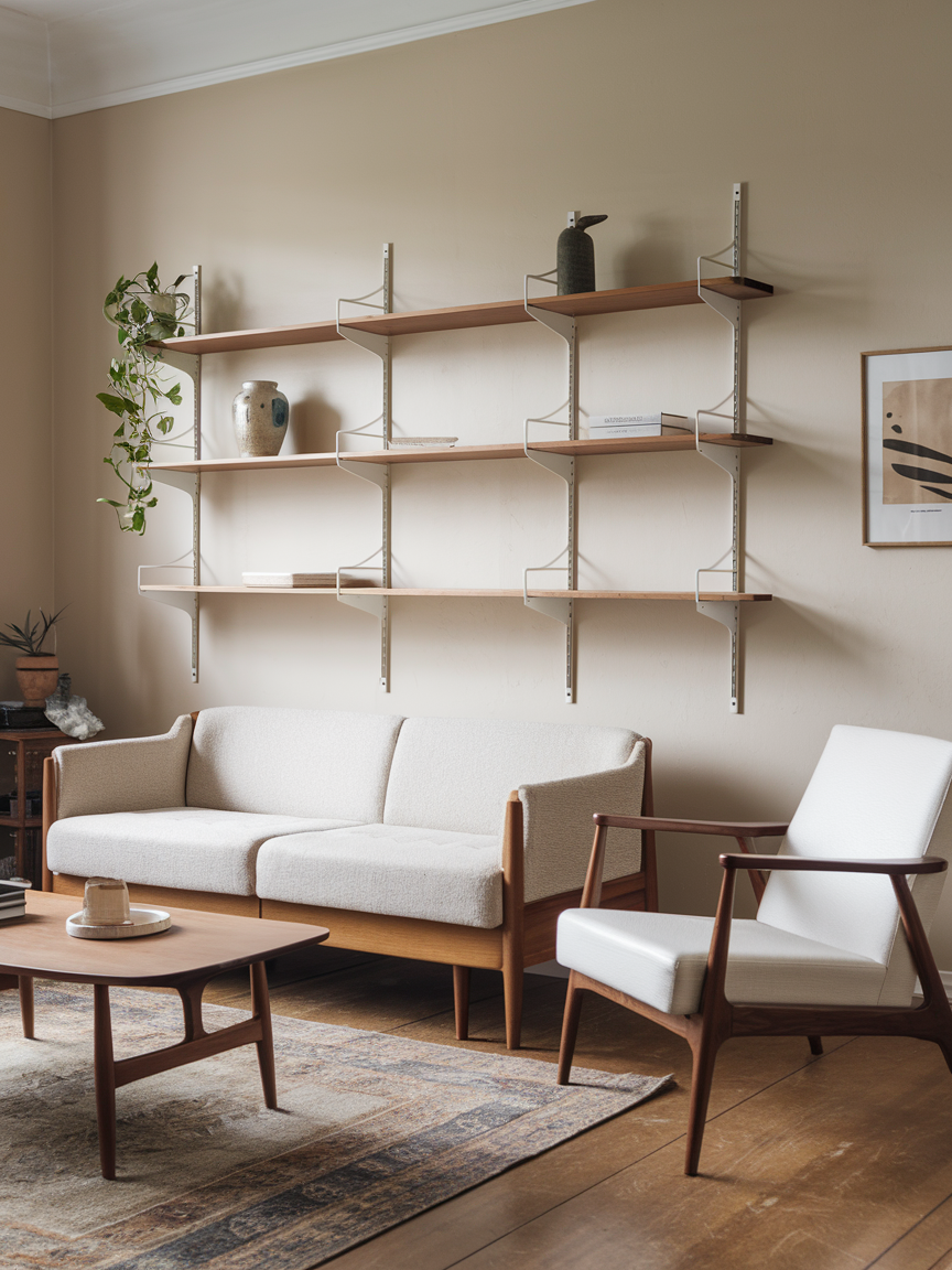 Wooden shelving offers both functionality and visual lightness when designed with simplicity in mind. Opt for open shelves with clean lines that allow items to breathe rather than feel crowded. Display only a curated selection of objects, such as books, plants, or ceramics, to maintain balance and intentionality. The natural grain of the wood adds warmth, while the open design keeps the room feeling spacious and uncluttered. This approach ensures storage remains practical while still aligning with the minimalist Japandi aesthetic.