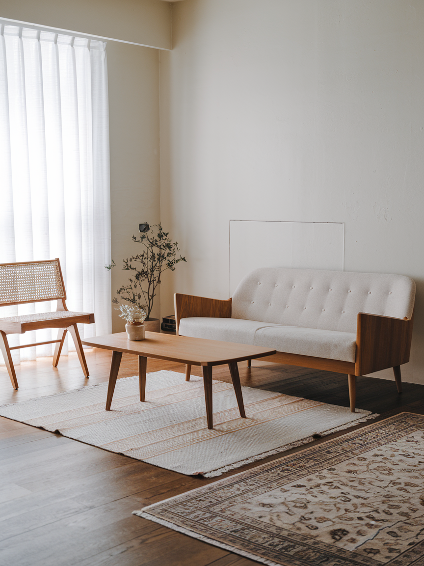 Layering rugs adds warmth and dimension while helping to define different areas within the living room. Combine materials like wool, cotton, or jute in neutral shades to maintain cohesion. Subtle variations in tone or texture create visual interest without disrupting the calm aesthetic. This layering technique also enhances comfort underfoot, making the space feel more inviting while preserving the simplicity and balance central to Japandi design.