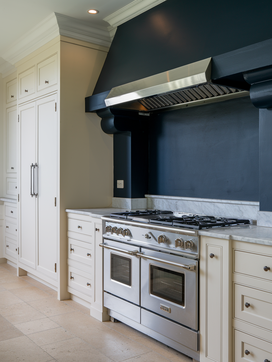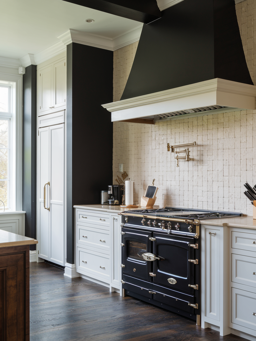 A dark accent wall introduces depth, contrast, and a sense of sophistication to your kitchen. Shades like charcoal, deep navy, or even matte black create a bold backdrop that makes lighter cabinetry and metallic accents stand out beautifully. This approach works especially well in kitchens with plenty of natural light, as it prevents the space from feeling too heavy. Pairing dark walls with warm wood tones or brass fixtures softens the look and adds balance. The result is a kitchen that feels modern, elegant, and full of character, offering a dramatic yet refined aesthetic that never feels overwhelming.
