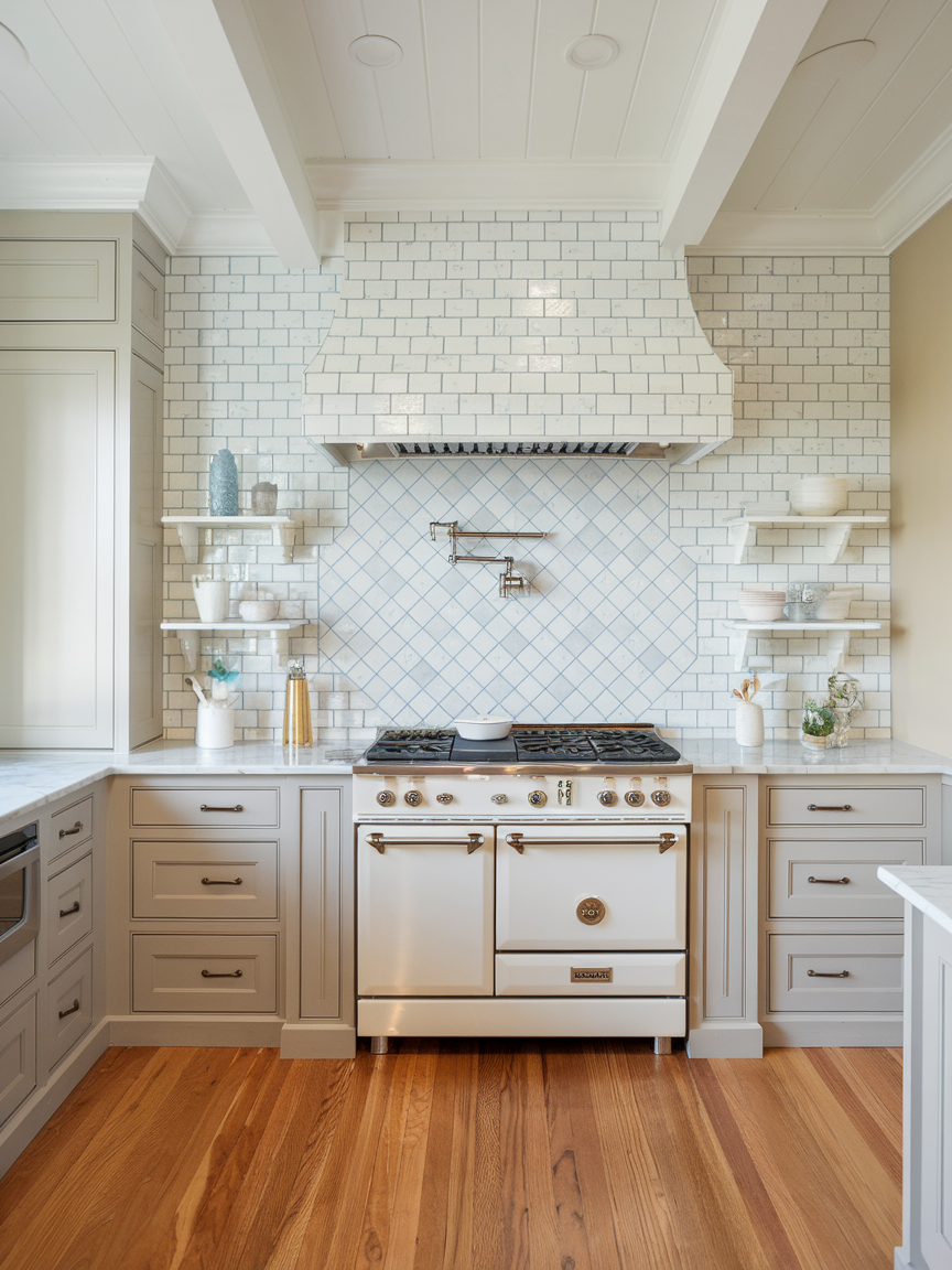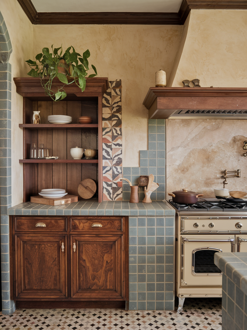 Patterned cement tiles introduce a vintage-inspired charm that adds character and uniqueness to your kitchen. Their intricate designs and muted colors create a nostalgic yet stylish look. These tiles work well as a backsplash or full accent wall, providing a strong visual focal point. Pair with simple cabinetry to keep the overall design balanced. This idea is perfect for those who want a kitchen that feels distinctive and full of personality.