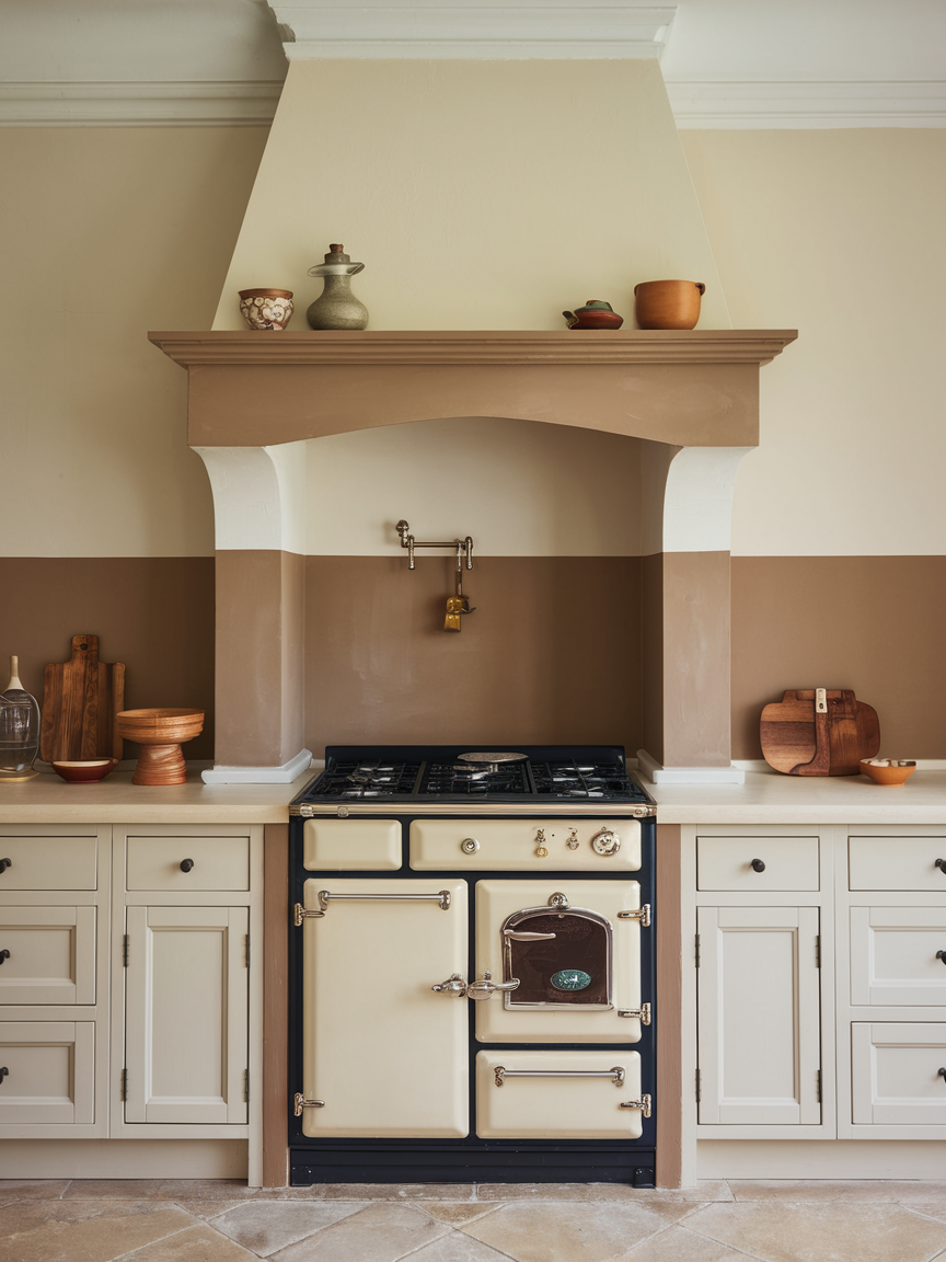 A two-tone accent wall is a simple yet effective way to add dimension without overwhelming your kitchen. By dividing the wall horizontally or vertically with complementary colors, you create visual interest while maintaining a cohesive palette. Soft neutrals paired with deeper tones work beautifully for a balanced look. This idea is perfect for those who want a subtle update that still feels intentional and stylish. It can also help define zones within an open kitchen, making the space feel more organized and thoughtfully designed.