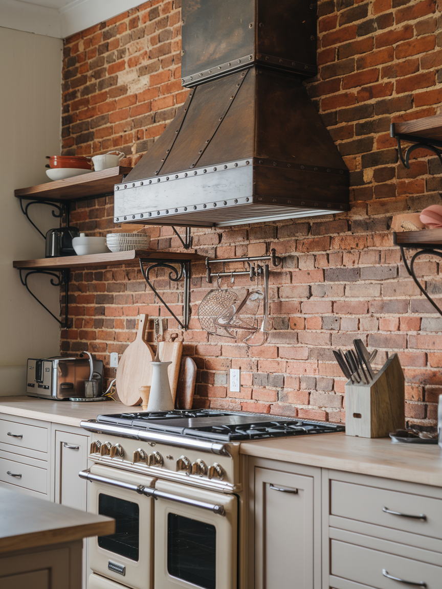 Exposed brick walls bring a raw, authentic charm that adds depth and character to any kitchen. The natural texture and warm tones create a welcoming atmosphere that feels both rustic and modern. Whether you keep the brick in its original red hue or paint it white for a softer look, it instantly becomes a focal point. Brick pairs beautifully with metal fixtures, wooden elements, and neutral palettes, making it incredibly versatile. This style is especially popular in loft or industrial-inspired kitchens, but it can also add contrast to more traditional spaces. The result is a kitchen that feels grounded, stylish, and full of personality.