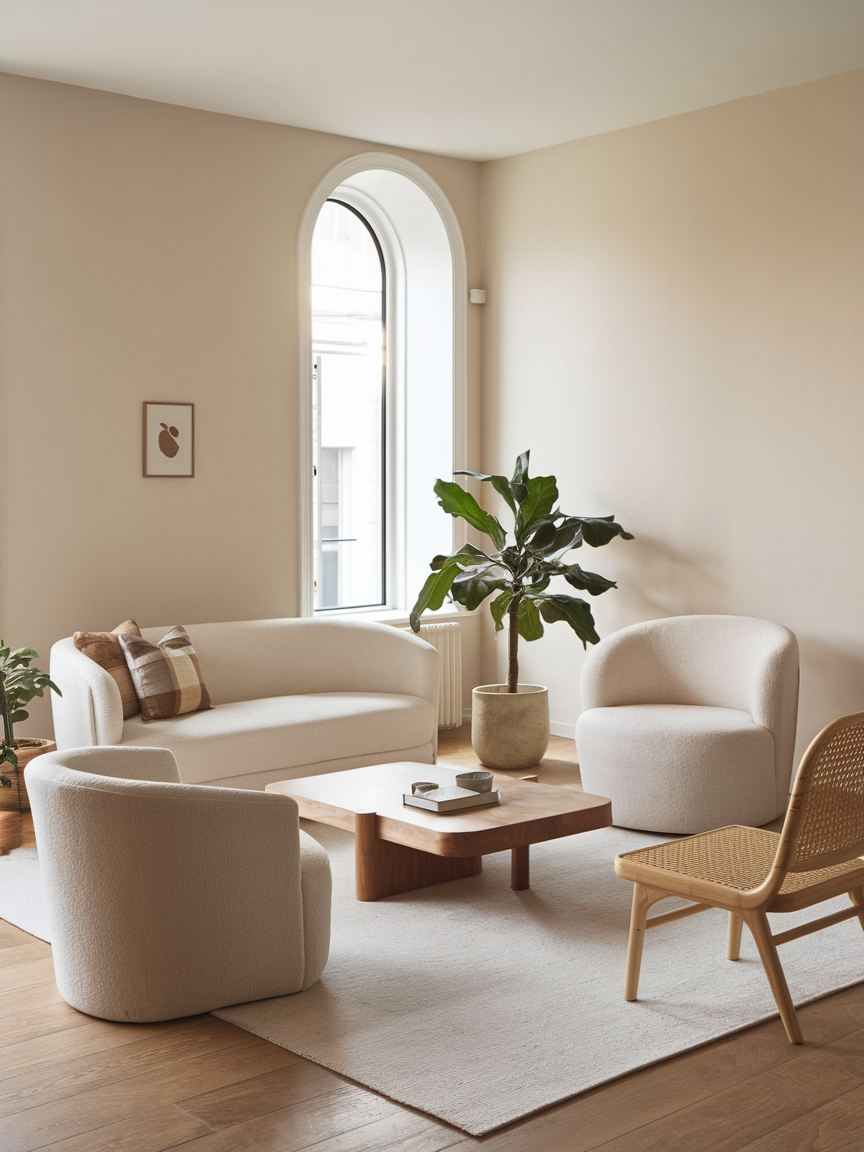 A neutral color palette forms the backbone of a modern minimalist living room, setting a calm and cohesive tone that instantly makes the space feel more open and breathable. Instead of relying on a single shade, layering tones like warm white, soft beige, light taupe, and gentle gray creates subtle depth and visual sophistication. These hues reflect natural light beautifully, enhancing the airy atmosphere while preventing the room from feeling flat or sterile. A neutral base also provides incredible flexibility, allowing you to introduce seasonal accents or small décor updates without disrupting the overall harmony. The result is a timeless foundation that feels both serene and effortlessly refined.