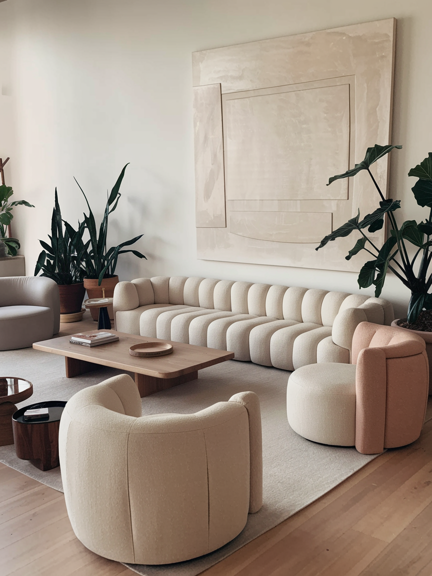 Low-profile furniture is essential for maintaining a sense of openness and visual calm in a minimalist living room. Sofas, coffee tables, and seating that sit closer to the ground help create clean sightlines, making the room appear more spacious and less crowded. This horizontal emphasis mirrors the relaxed, grounded feeling of modern interiors, encouraging a more laid-back and comfortable environment. In addition to aesthetics, low furniture also improves flow, making it easier to move around the space. When paired with soft textures and neutral tones, these pieces contribute to a living room that feels both stylish and deeply inviting.