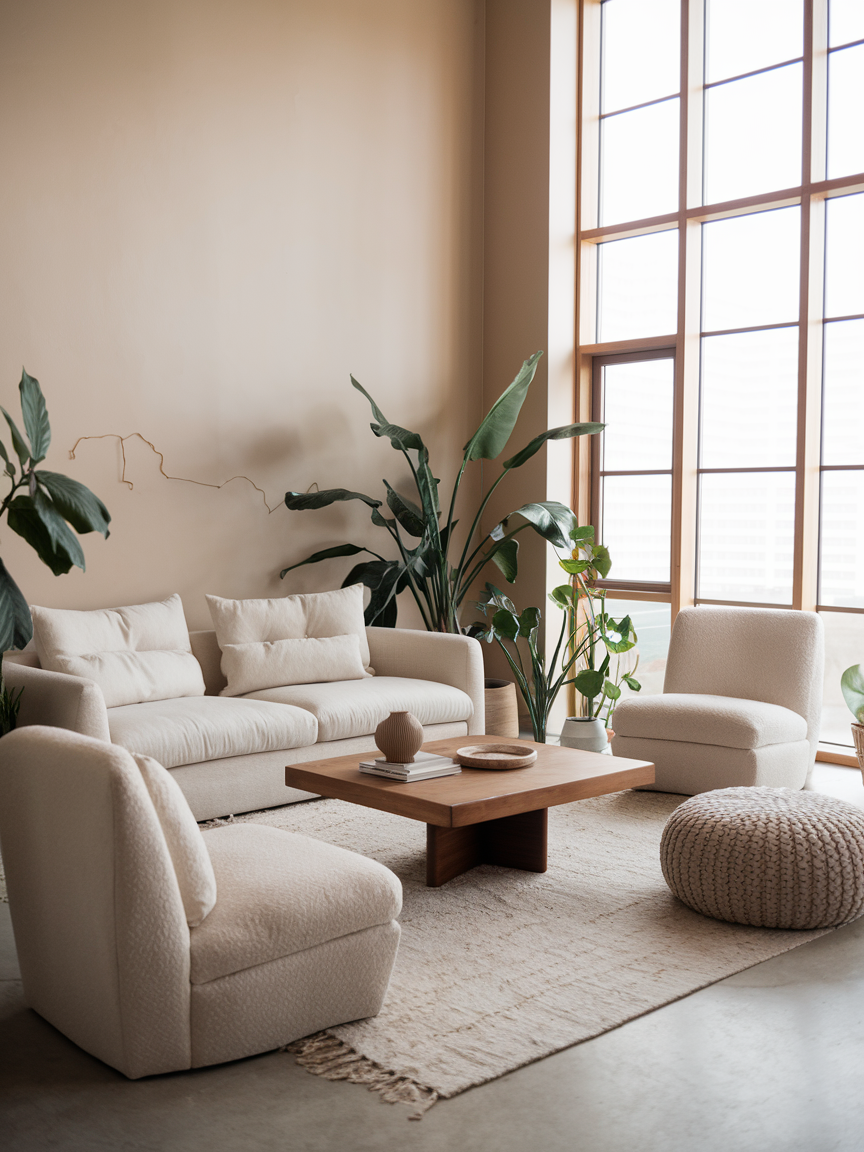 Natural light is one of the most powerful elements in a minimalist living room, enhancing both the aesthetic and the overall mood of the space. Large windows, sheer curtains, or unobstructed openings allow sunlight to flow freely, illuminating neutral tones and highlighting textures. This abundance of light creates a fresh, uplifting atmosphere that feels open and inviting. Maximizing natural light also reduces the need for artificial lighting during the day, reinforcing the simplicity and efficiency of minimalist design. The result is a living room that feels alive, warm, and effortlessly serene.