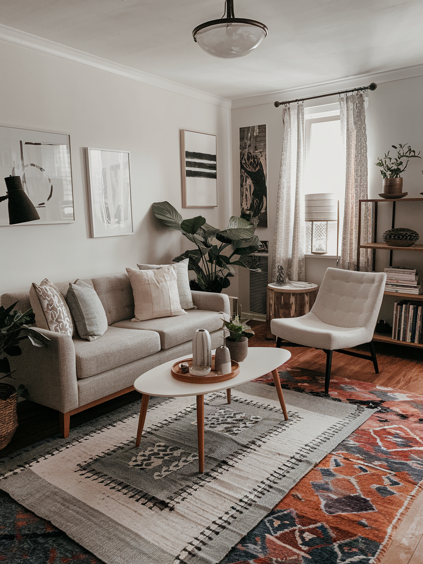 You might think one rug is enough, but layering rugs can actually make a space feel richer and more dynamic. Start with a larger neutral rug to define the space, then add a smaller patterned or textured rug on top. This not only adds personality but also helps visually zone the room. I once layered a jute rug under a bold kilim, and it instantly made my small living room feel cozy and designer-worthy.