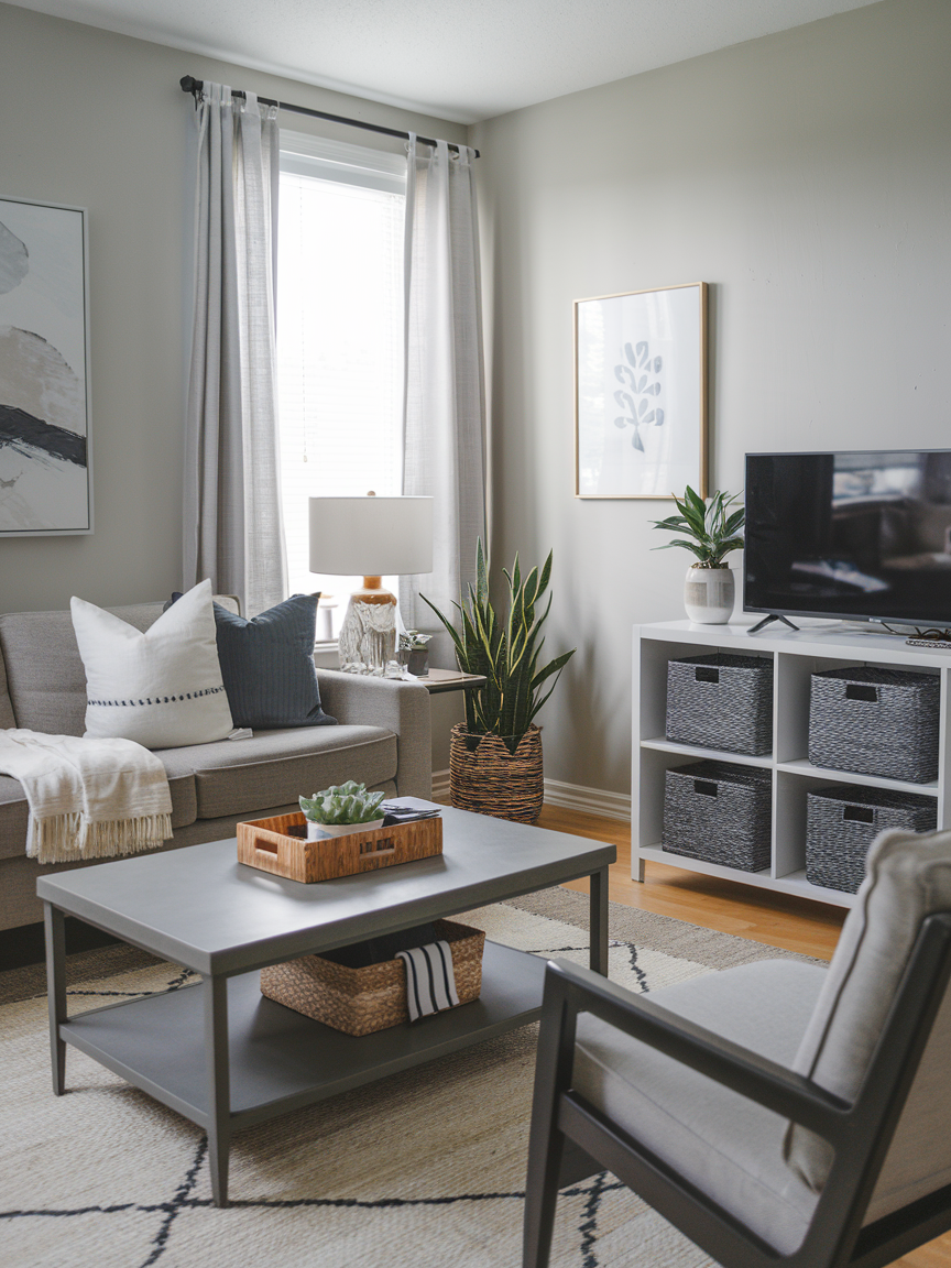 Baskets are the unsung heroes of small living room organization. They’re perfect for hiding throws, toys, magazines, or any bits and bobs that would otherwise make the space feel messy. I keep two woven baskets under my coffee table, and it’s the easiest way to do a quick “tidy up” when guests are on their way. Functional and cute? Win-win.