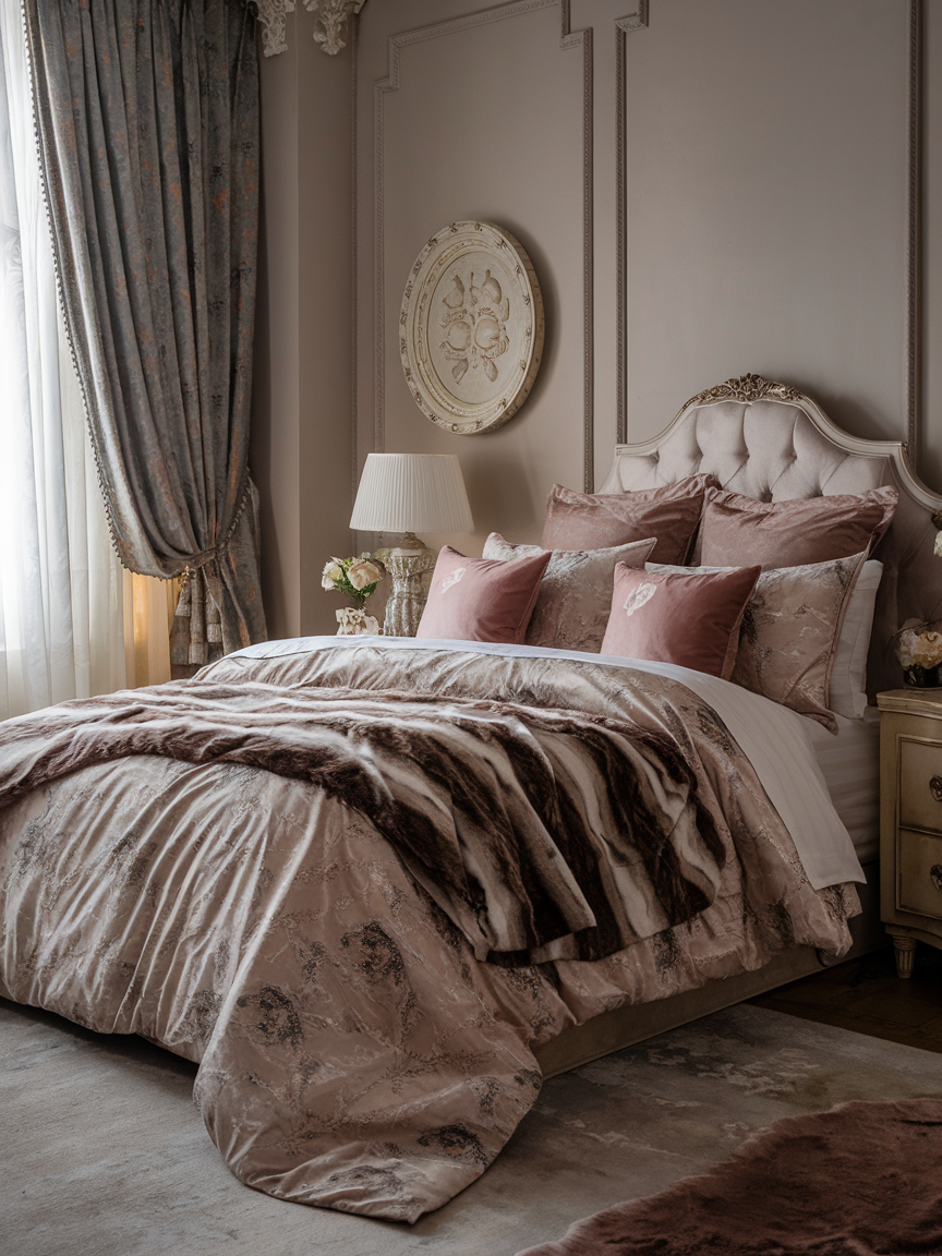 A romantic bedroom begins with bedding that feels indulgent and comfortable. Soft sheets, fluffy pillows, and layered blankets create an inviting bed that encourages relaxation and closeness. Incorporating textures such as velvet cushions, silky duvets, or faux fur throws adds depth and richness to the overall look. High-quality bedding not only enhances sleep but also elevates the visual appeal of the room. When your bed feels like a cozy retreat, it naturally becomes the centerpiece for intimate moments, restful nights, and slow, peaceful mornings shared together.