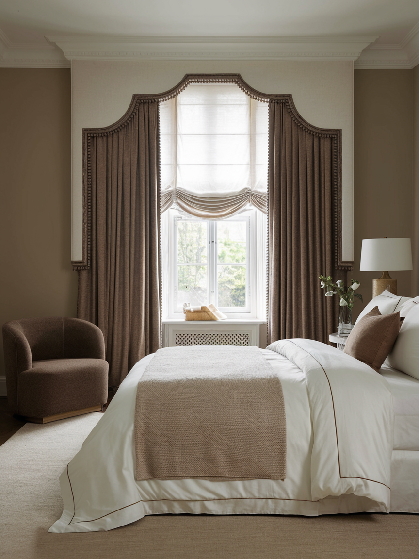 Layered window treatments provide both aesthetic appeal and practical control over light and privacy. Combining sheer curtains with heavier drapes allows flexibility throughout the day. Sheers create a soft glow during daylight hours, while blackout curtains ensure restful sleep and privacy at night. Coordinating these layers with the room’s overall design enhances cohesion. This combination not only improves functionality but also adds depth and softness to the bedroom, contributing to a refined and romantic atmosphere.
