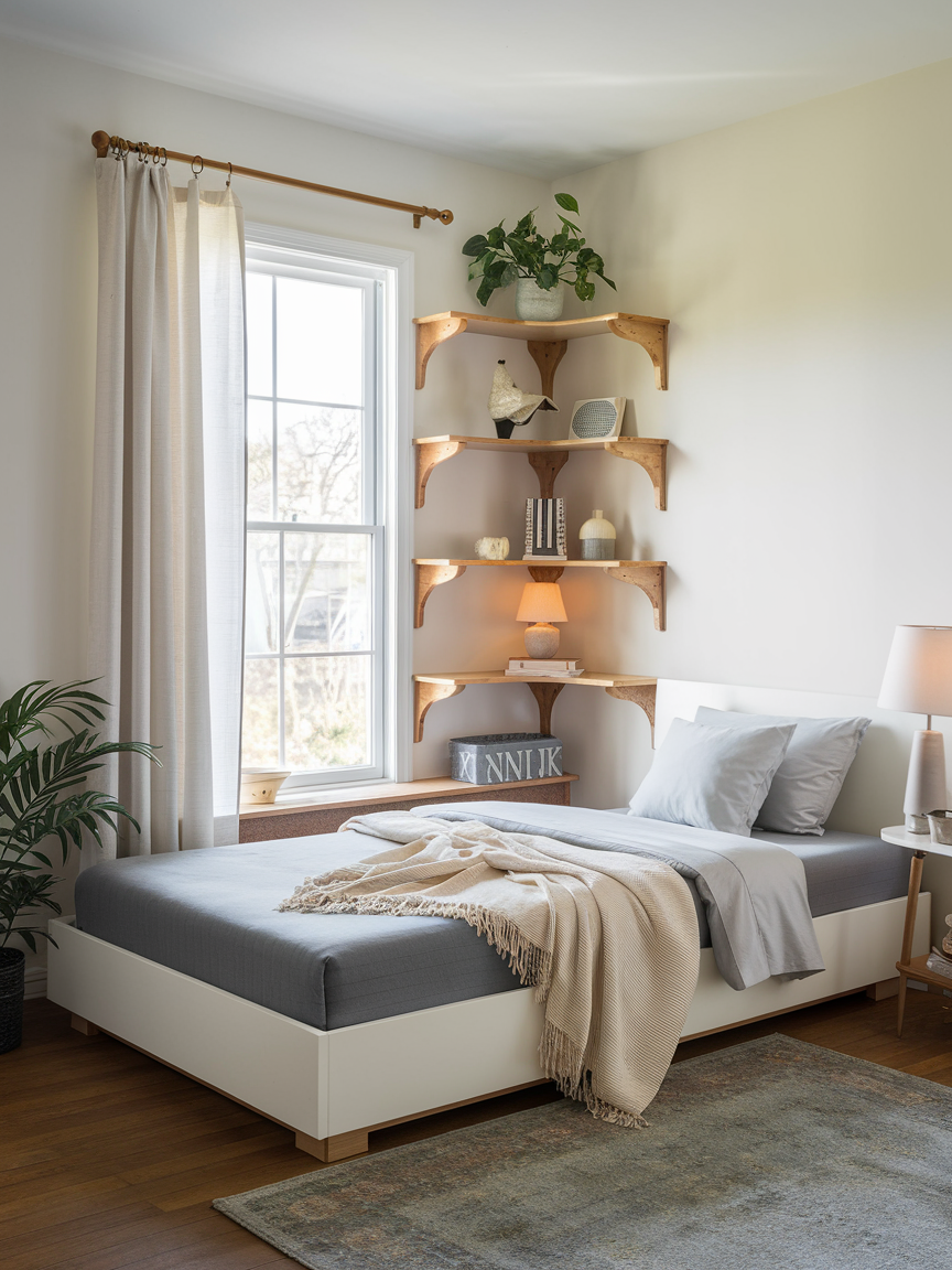 Corner shelves make use of often-overlooked spaces, turning them into functional and decorative areas. They are ideal for displaying books, plants, or personal items without taking up valuable floor space. Their compact design works well in both small and large bedrooms, adding dimension and interest to the layout. By utilizing corners effectively, you can increase storage while maintaining a clean and organized look.