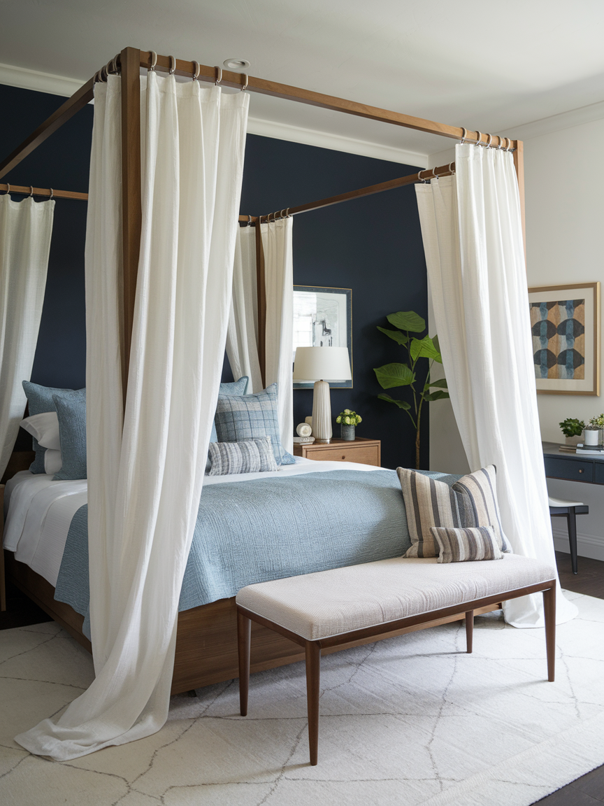 Canopy beds introduce height, elegance, and a sense of drama to the bedroom. Their structured frames create a striking visual statement while also offering opportunities for personalization. Light, flowing curtains can evoke a soft, romantic ambiance, while heavier fabrics add richness and depth. Even in smaller rooms, a well-proportioned canopy bed can create a cozy, cocoon-like effect. This piece transforms the bed into a centerpiece, adding character and charm without requiring an extensive redesign.