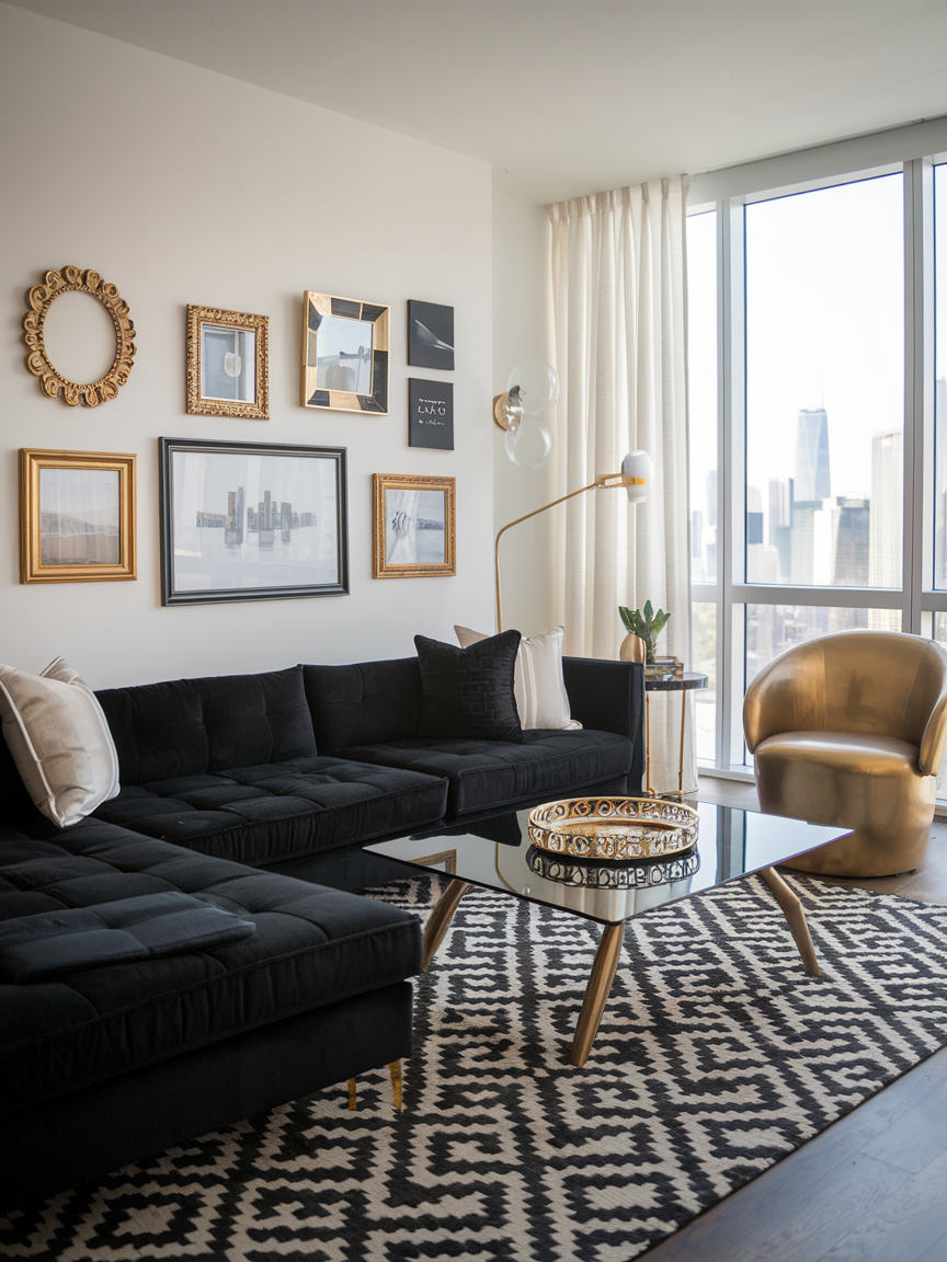 Metallic finishes can instantly elevate your living room design. Gold, brass, chrome, or matte black accents add a touch of glamour and sophistication. You can introduce them through lighting fixtures, coffee table legs, picture frames, or decorative trays. Mixing metals is very much in style, but it is best to stick with two complementary finishes to keep the look cohesive. Metallics also reflect light, adding brightness and dimension to the space without making it feel cluttered.