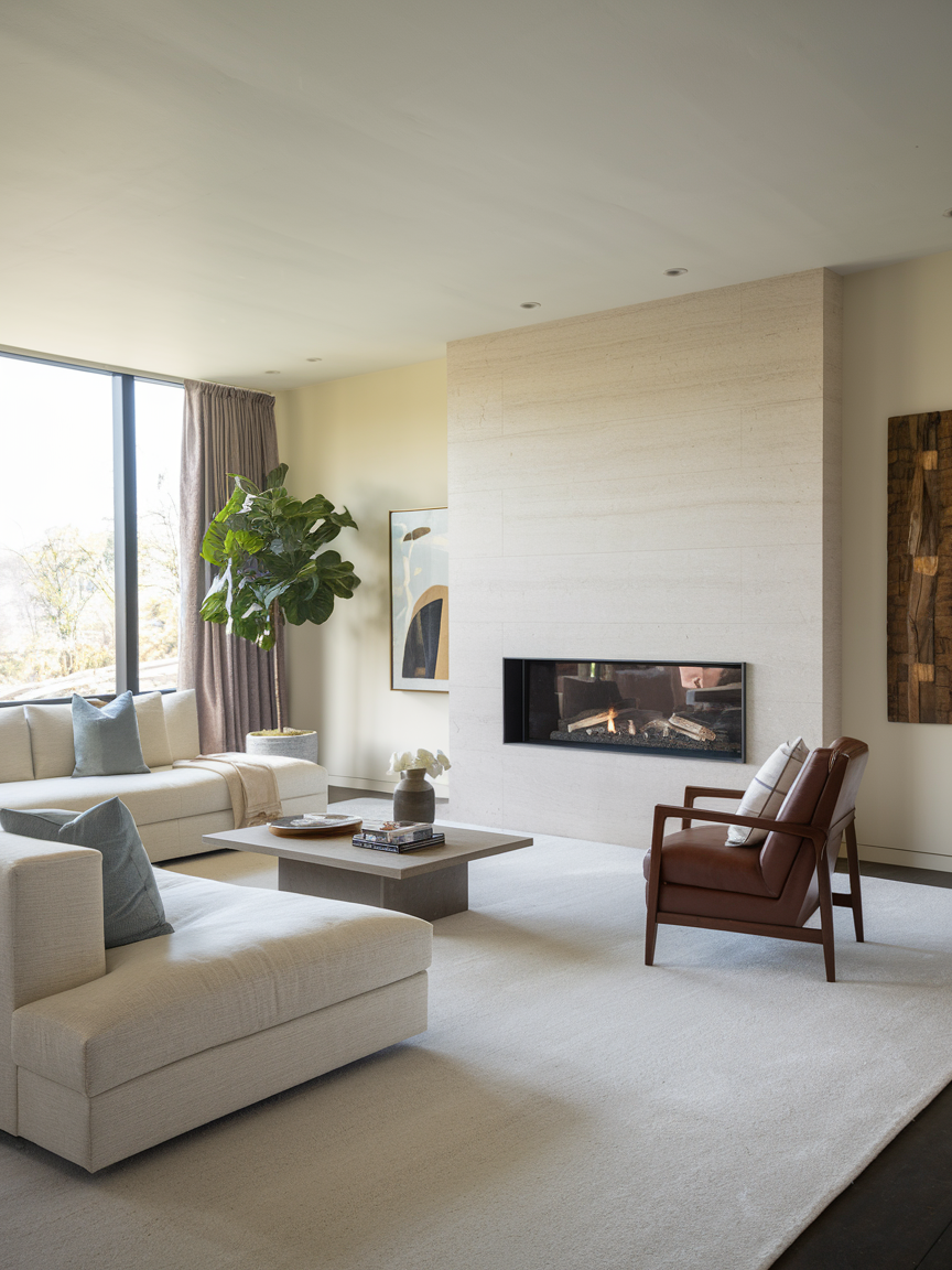 A fireplace is no longer just for traditional homes. Sleek electric or gas models can create a cozy focal point in even the most minimalist living rooms. Many modern fireplaces feature linear designs, clean surrounds, and even built-in shelving for a streamlined look. They provide both warmth and atmosphere, making the living room more inviting. Even if you cannot install a real one, a stylish faux fireplace can add character and charm while keeping with your modern aesthetic.