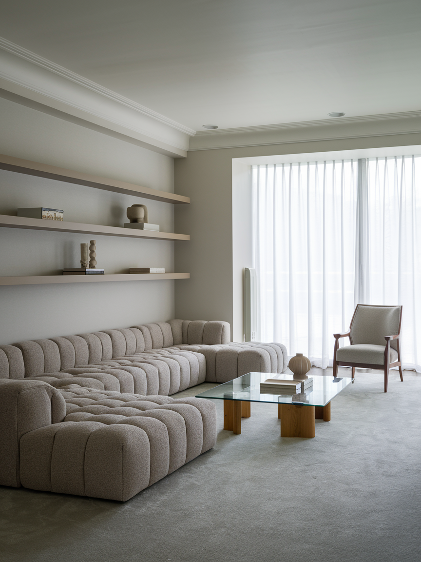 Neutral tones are like the best friend you can always rely on in interior design. Soft beiges, warm whites, and muted grays create a calming, timeless backdrop that works with almost any style you throw at it. The beauty of going neutral is that it gives your living room a spacious, airy feel without looking boring. You can add personality through textures like chunky throws, linen curtains, or a jute rug. And when you feel like switching things up? Just change your cushions or artwork, and you’ve got a whole new vibe.