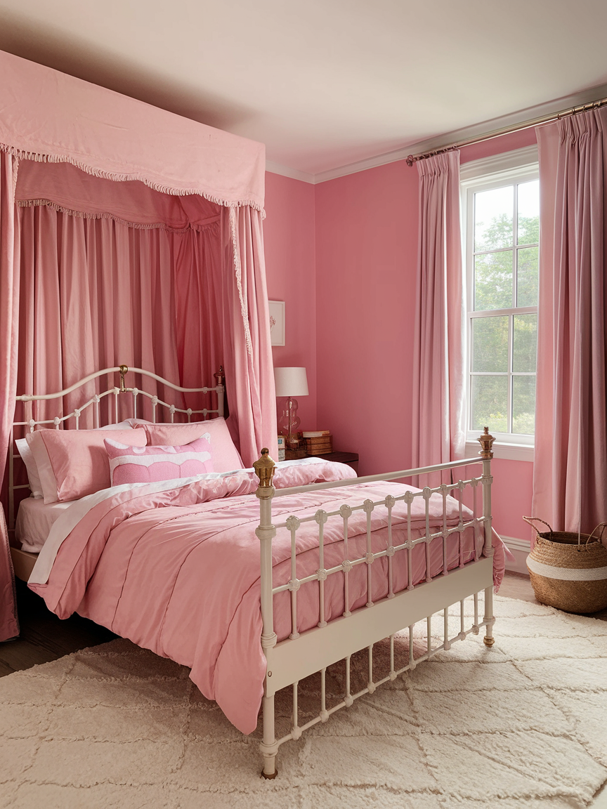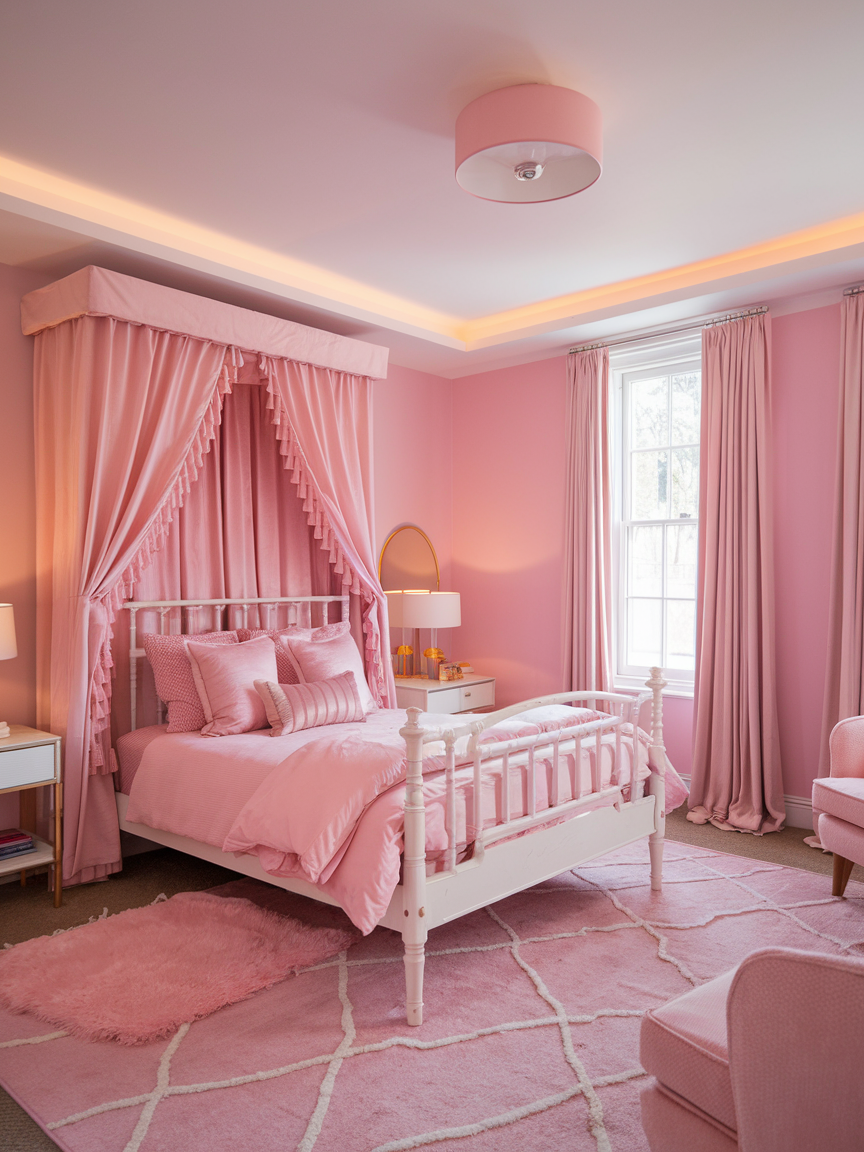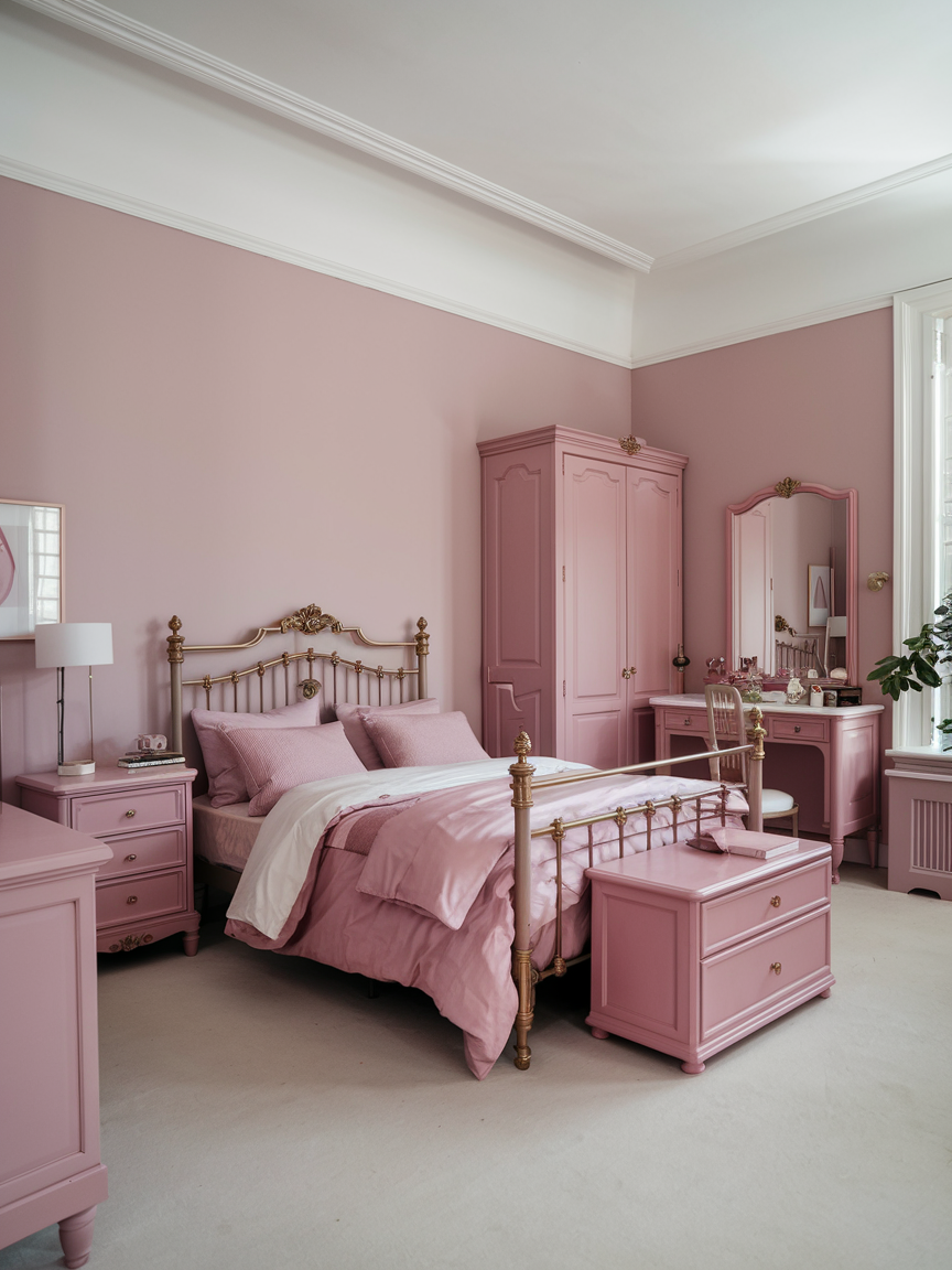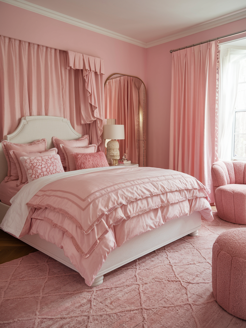 Using multiple shades of pink throughout the room prevents the design from feeling flat or overly coordinated. Combining light blush, warm rose, and deeper mauve tones adds depth and visual interest. Distributing these shades across bedding, decor, and accessories creates a cohesive yet dynamic look. Keeping undertones consistent ensures harmony while allowing the color palette to feel rich and layered. This technique helps the room feel thoughtfully designed and visually balanced.