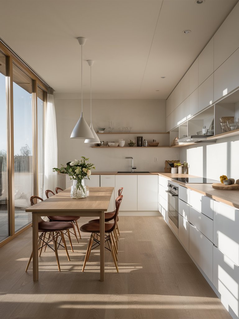 This kitchen exemplifies the timeless nature of Scandinavian design, incorporating elements that will remain stylish for years to come. The combination of white cabinetry, wood accents, and minimalist details ensures that the space does not feel trend-driven.