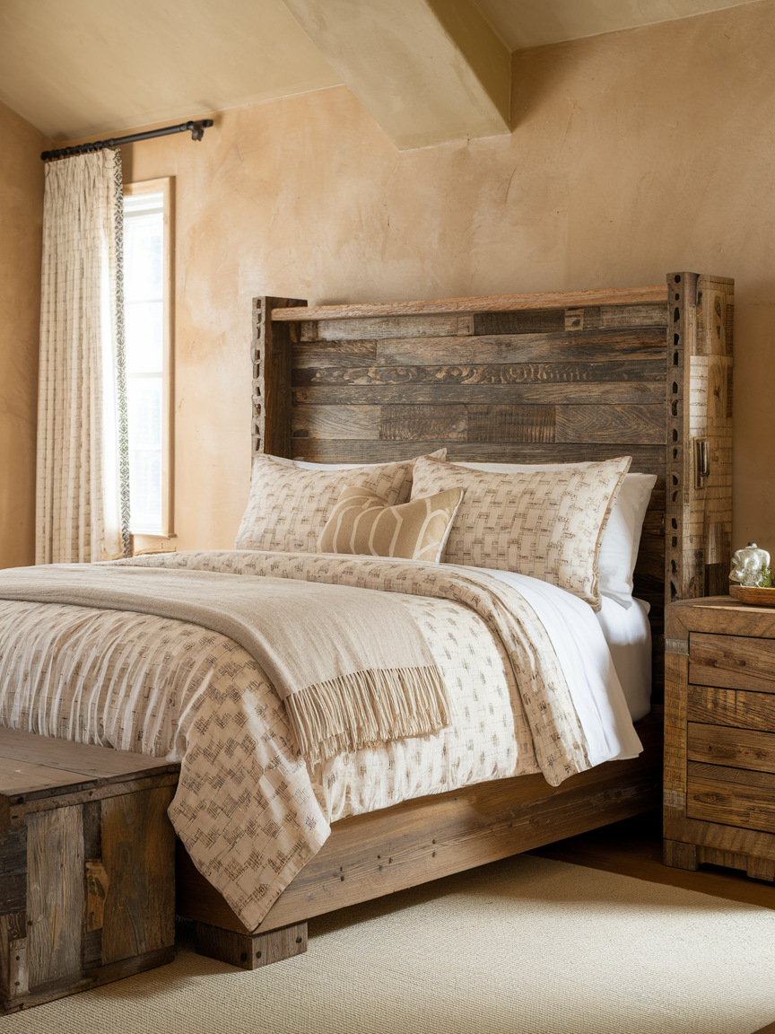 Rustic wood furniture brings natural warmth and texture to a bedroom, creating a cozy and inviting atmosphere. Beds, dressers, and nightstands with distressed or reclaimed wood give the room character and charm. Rustic pieces work well with modern, bohemian, or farmhouse styles, making them versatile. They add depth and visual interest while remaining timeless and durable. Incorporating rustic furniture ensures the bedroom feels lived-in and welcoming, balancing style and comfort without feeling overly fussy or rigid.