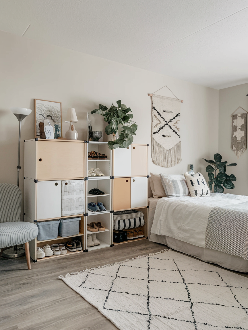 Modular storage units provide flexibility and adaptability for growing needs or changing tastes. They can be stacked, rearranged, or customized to fit the space perfectly. These units offer ample storage for clothing, books, or personal items while keeping the room organized and stylish. Modular designs are perfect for small or irregular spaces and are often budget-friendly. Their versatility allows you to create a functional, efficient, and aesthetically pleasing bedroom environment that can evolve with your lifestyle.