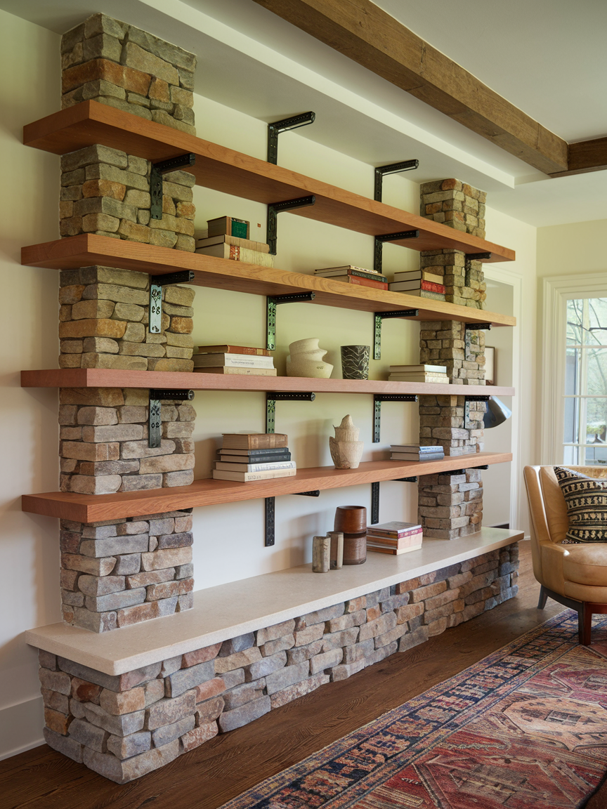 Adding decorative back panels to your built-in bookshelves introduces subtle visual interest and depth without overwhelming the design. Whether using wallpaper, painted accents, or textured materials, the back panel becomes a soft focal point that enhances the overall aesthetic. This detail helps define each section of the shelving, making the arrangement feel more structured and curated while maintaining a clean and cohesive look.