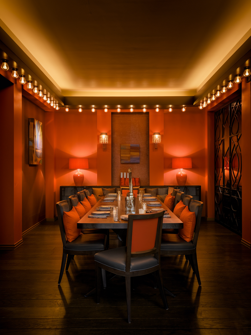 Layered lighting is essential for bringing out the full richness of orange tones while creating a cozy and adaptable dining environment. By combining multiple light sources, such as overhead pendants, wall sconces, and table lamps, you can build depth and dimension throughout the space. Warm-toned bulbs are particularly effective, as they enhance the natural warmth of orange hues, making the room feel more inviting and intimate, especially during evening meals. Dimmers add another level of flexibility, allowing you to shift from bright, functional lighting during the day to a softer, more ambient glow at night. Thoughtful placement ensures that each area of the room feels intentional, highlighting key features like artwork, furniture, or architectural details. When done well, layered lighting not only improves functionality but also elevates the overall mood, transforming the dining room into a space that feels both elegant and welcoming at any time of day.