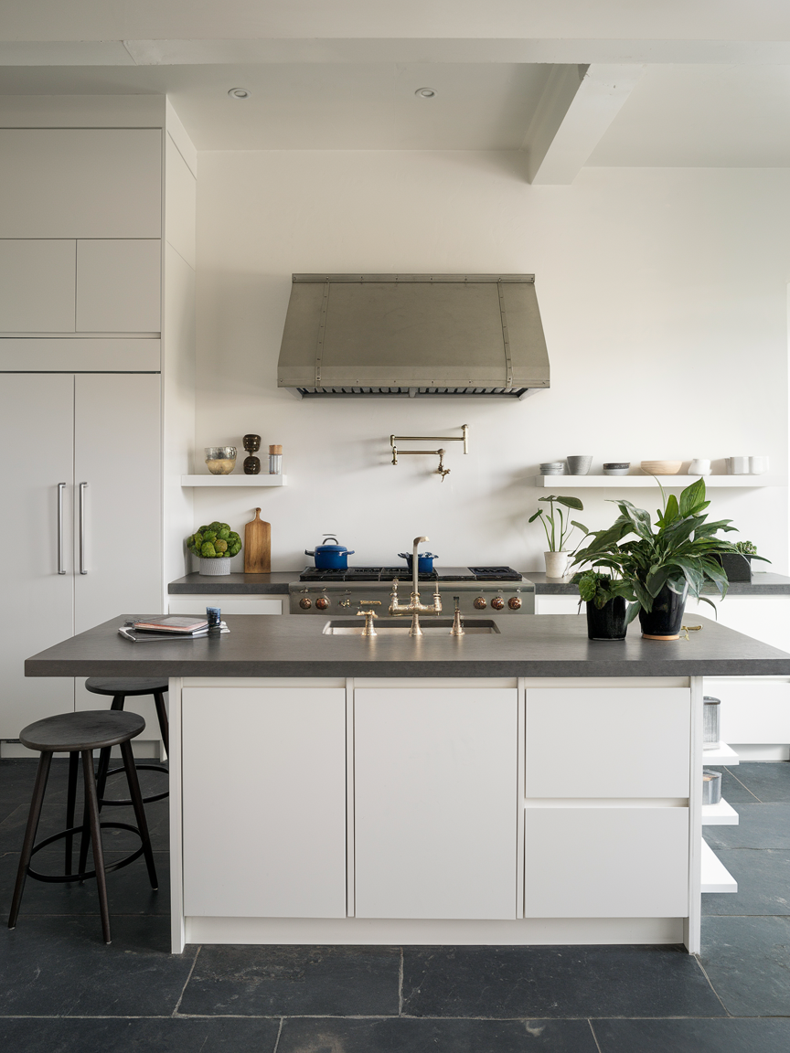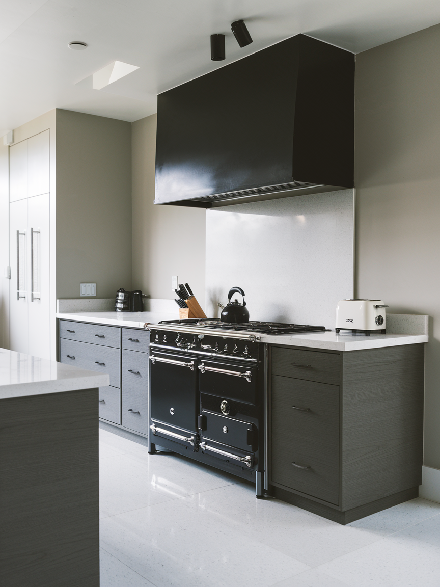 A monochrome kitchen in shades of gray, black, or white is an instant style win. The beauty of this approach is its simplicity and clean lines, which make your kitchen feel spacious and modern. I personally love mixing different textures, like matte cabinets with glossy countertops, to add dimension without clutter. Monochrome kitchens also give you the freedom to experiment with statement lighting or colorful kitchen gadgets because everything else stays neutral. It’s stylish, practical, and perfect for minimalists who secretly love a pop of color here and there.