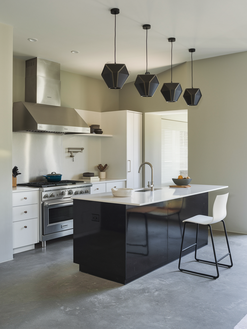 Statement pendant lights above the island or countertop are both stylish and functional. They provide task lighting while also acting as decor, instantly elevating the space. I’m a sucker for bold, geometric fixtures in metallic finishes because they give the kitchen personality without being overwhelming. Lighting is often overlooked, but it plays a huge role in making a contemporary kitchen feel polished, inviting, and practical for all your cooking adventures.