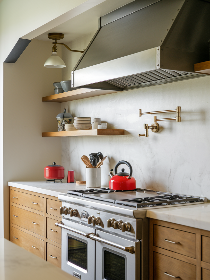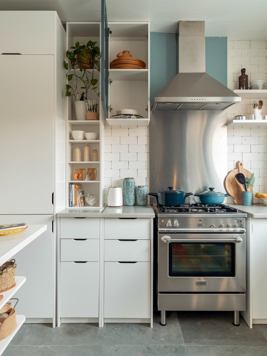 Open shelving is both stylish and practical, provided you keep it organized. Floating shelves or wall-mounted racks let you display your favorite dishes, cookbooks, or quirky kitchen gadgets. It gives your kitchen personality and encourages you to keep things neat. I personally think open shelves are a great way to showcase your style while making items easily accessible. Just remember, clutter is the enemy here. A few carefully curated pieces go a long way in keeping your contemporary kitchen chic and functional.