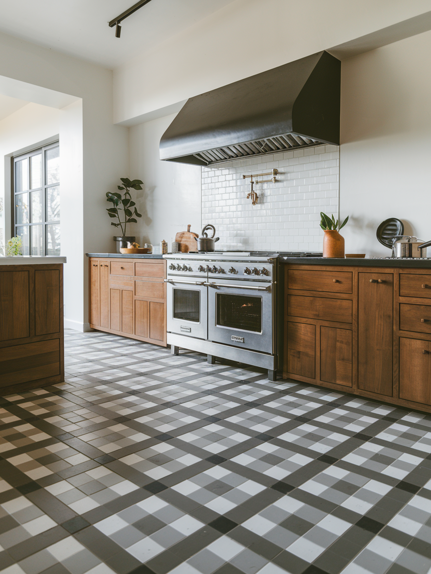 A striking floor pattern adds a contemporary edge without taking up space. Black-and-white tiles, geometric designs, or subtle textures can create visual interest. I love bold flooring because it grounds the space and adds personality instantly. It’s a stylish way to make a statement while keeping other elements sleek and simple. Contemporary kitchens benefit from these little surprises that make the design memorable.