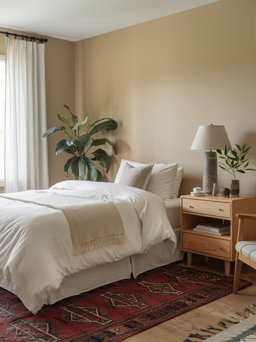 Soft, plush rugs are essential for creating a cozy bedroom sanctuary. Stepping onto a thick, warm rug in the morning is an instant mood booster and adds tactile comfort underfoot. Choose natural fibers like wool or cotton for softness and durability. A large rug can define the room’s layout, anchor furniture, and add layers of texture that make the space feel complete. Rugs also help to soften sounds, creating a quiet and serene environment. Investing in a plush rug instantly elevates the comfort and warmth of your bedroom.