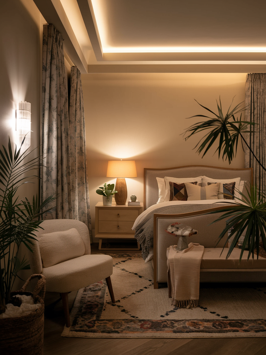 Layering different types of lighting provides flexibility and adds depth to your bedroom. Combine ceiling lights with table lamps, floor lamps, and subtle string lights to create a warm, ambient glow. This approach lets you adjust brightness for reading, relaxing, or winding down. Layered lighting highlights textures, colors, and focal points in the room, creating a cozy, inviting atmosphere. Thoughtful lighting design turns your bedroom into a sanctuary where you can feel calm and relaxed at any time of day.