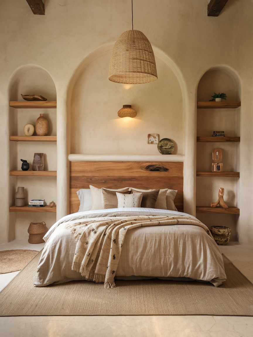Small wood accents like picture frames, bedside tables, or decorative trays create a subtle warmth in the bedroom. These natural elements complement textiles, rugs, and lighting, making the room feel layered and inviting. Wood tones add a grounded, earthy feel that enhances comfort and charm. Even small touches of wood bring personality and warmth without overwhelming the space. These accents work beautifully with neutral or soft color palettes to ensure the bedroom feels harmonious, cozy, and perfectly suited for relaxation.