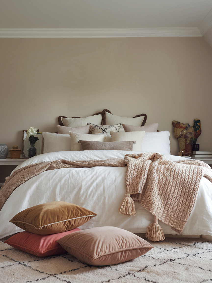 Adding textured throws and pillows creates an instant sense of comfort in your bedroom. Choose fabrics like knit, velvet, faux fur, or linen to layer softness and dimension on your bed. Different textures make the room feel tactile and inviting, encouraging relaxation. Throws are functional for chilly nights, while pillows provide support and decorative flair. Mixing textures also adds personality and warmth to your sanctuary, giving it a lived-in, welcoming vibe. This simple addition can make your bedroom feel luxurious, cozy, and totally irresistible.