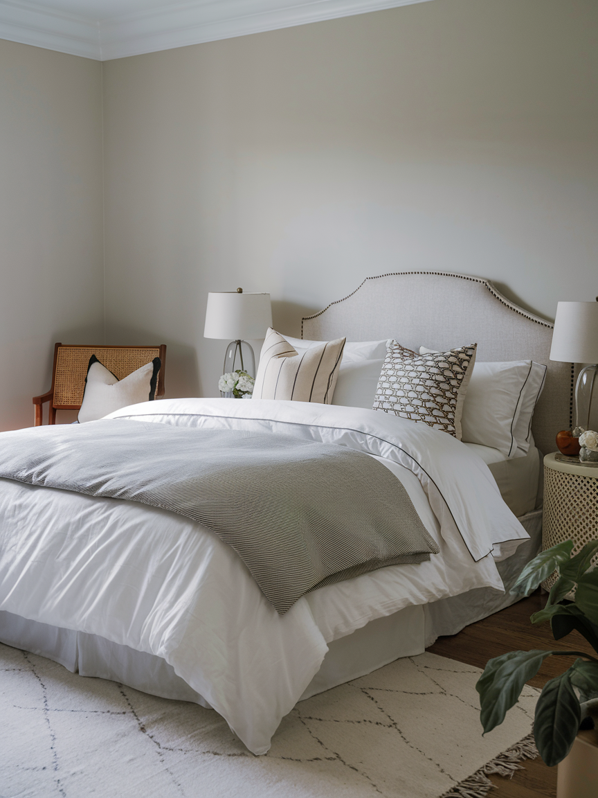 Soft, neutral colors instantly create a calming and cozy atmosphere in your bedroom. Think creamy whites, warm taupes, gentle beiges, and soft greys. These shades provide a serene backdrop that makes your room feel peaceful and inviting. Neutral tones are versatile and allow you to layer textures, patterns, and accents without overwhelming the space. Using neutral colors can also visually expand the room, making it feel airy and tranquil. Pair these shades with natural lighting and warm textures to instantly elevate the comfort and coziness of your sanctuary.
