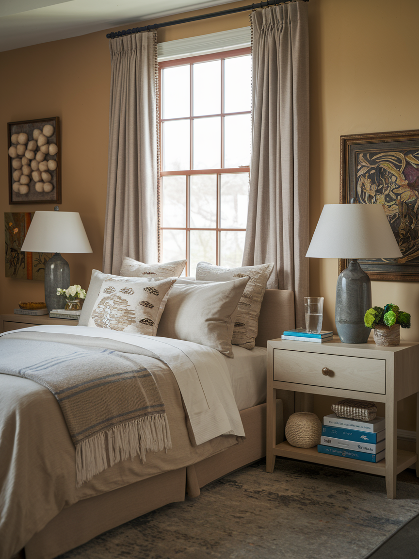 A functional nightstand keeps essentials like books, lamps, and water within reach while adding style to your bedroom. Choose pieces that complement your bed and overall design. Open shelving or drawers help maintain organization while enhancing the room’s cozy vibe. Nightstands provide balance and structure while contributing to comfort and convenience. Thoughtfully chosen nightstands ensure your bedroom is both beautiful and practical, reinforcing the sense of sanctuary and making daily routines more enjoyable and relaxed.