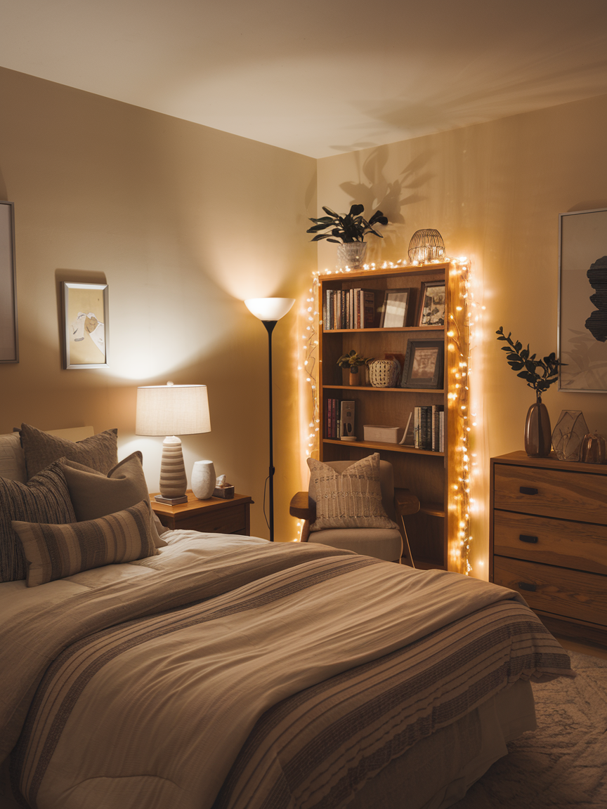 Lighting is one of the most underrated elements in creating a cozy bedroom. Instead of relying solely on harsh ceiling lights, use multiple sources of soft, warm light like table lamps, floor lamps, and fairy lights. Dimmable lighting allows you to adjust brightness for reading, relaxing, or winding down before sleep. Lighting can also highlight your room’s textures, colors, and decor, making the space feel inviting and personal. Thoughtful lighting instantly transforms your bedroom into a calm and cozy sanctuary where you can truly relax.